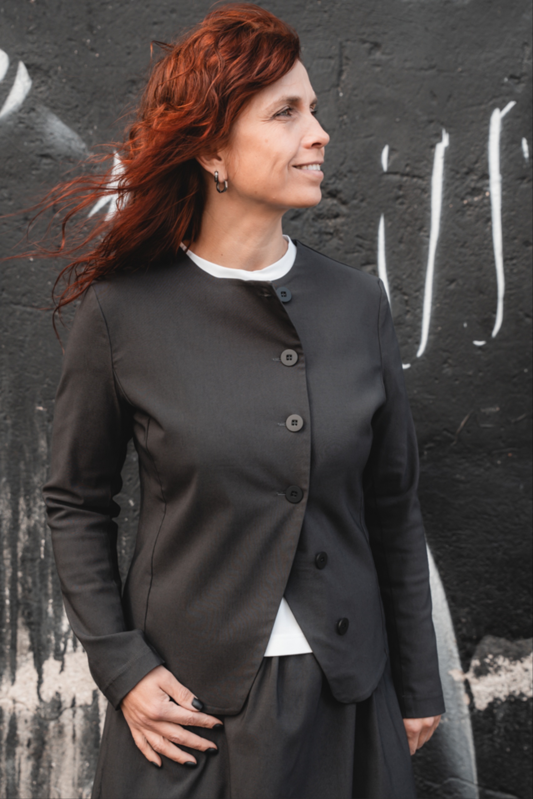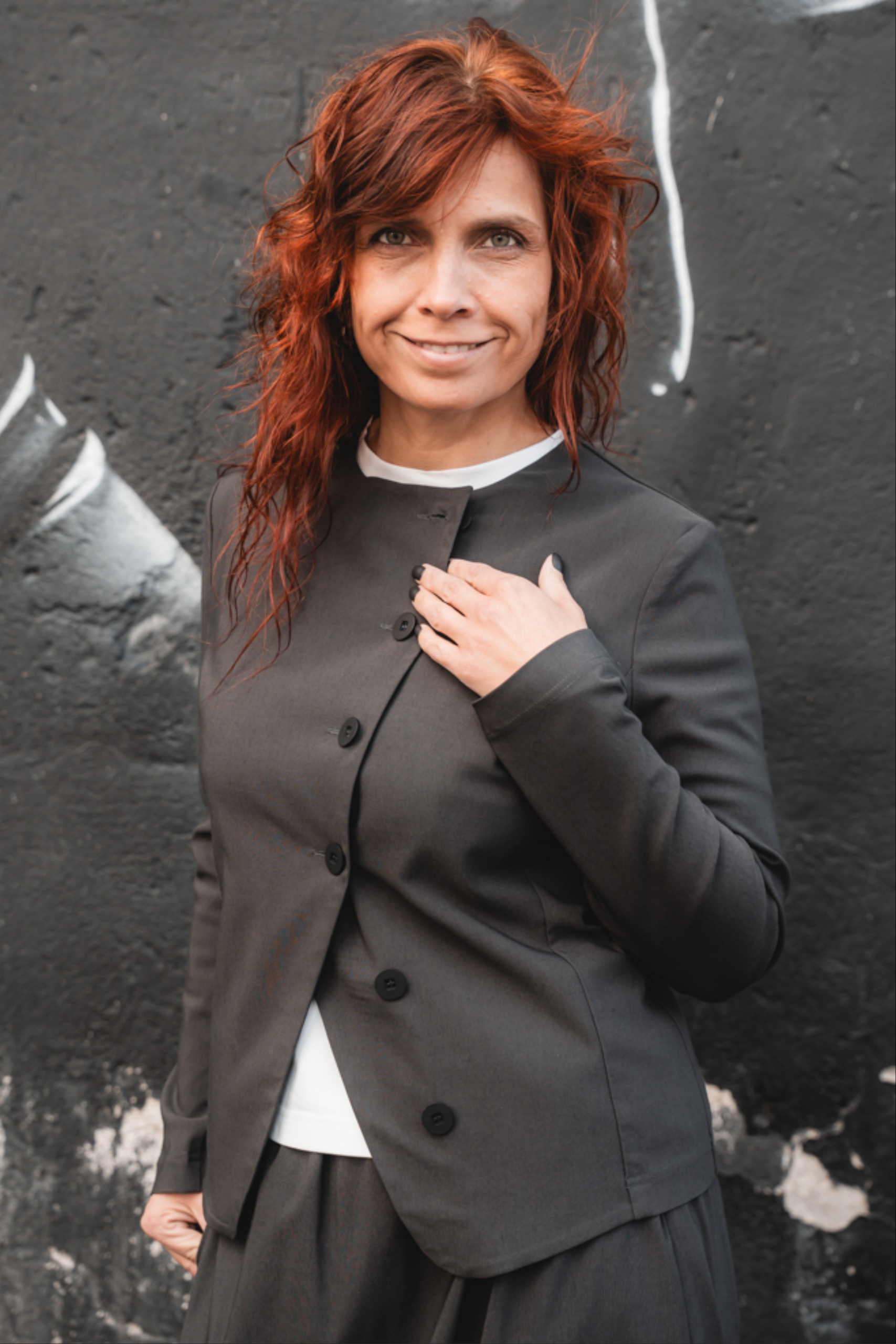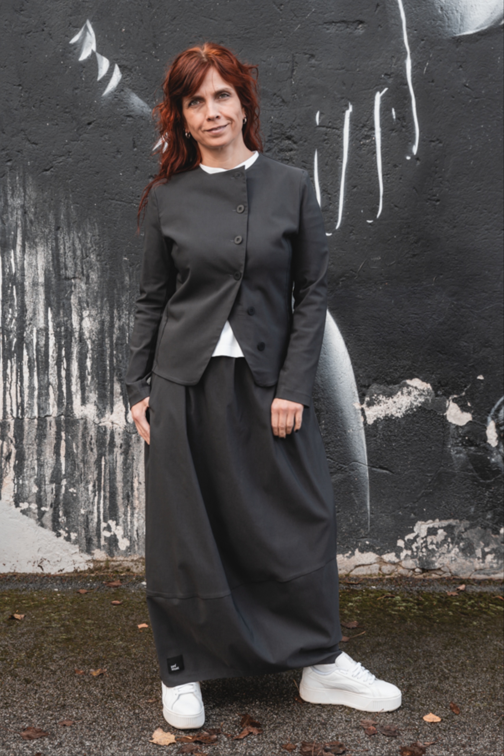 Minimalistliku lõike ja asümmeetrilise eest kinnitusega Fukumu jakk on loodud neile, kes hindavad selget joont ja mugavust. Ilma voodrita jakk on kerge ja mugav, sobides suurepäraselt nii sees kui väljas kandmiseks. Ümar kaelus ja kergelt kaarjas nööpidega esikinnis annavad jakile eripärase ilme. Must toon teeb sellest lihtsasti kombineeritava eseme, mis täiendab nii igapäevast kui ka pidulikumat riietust.