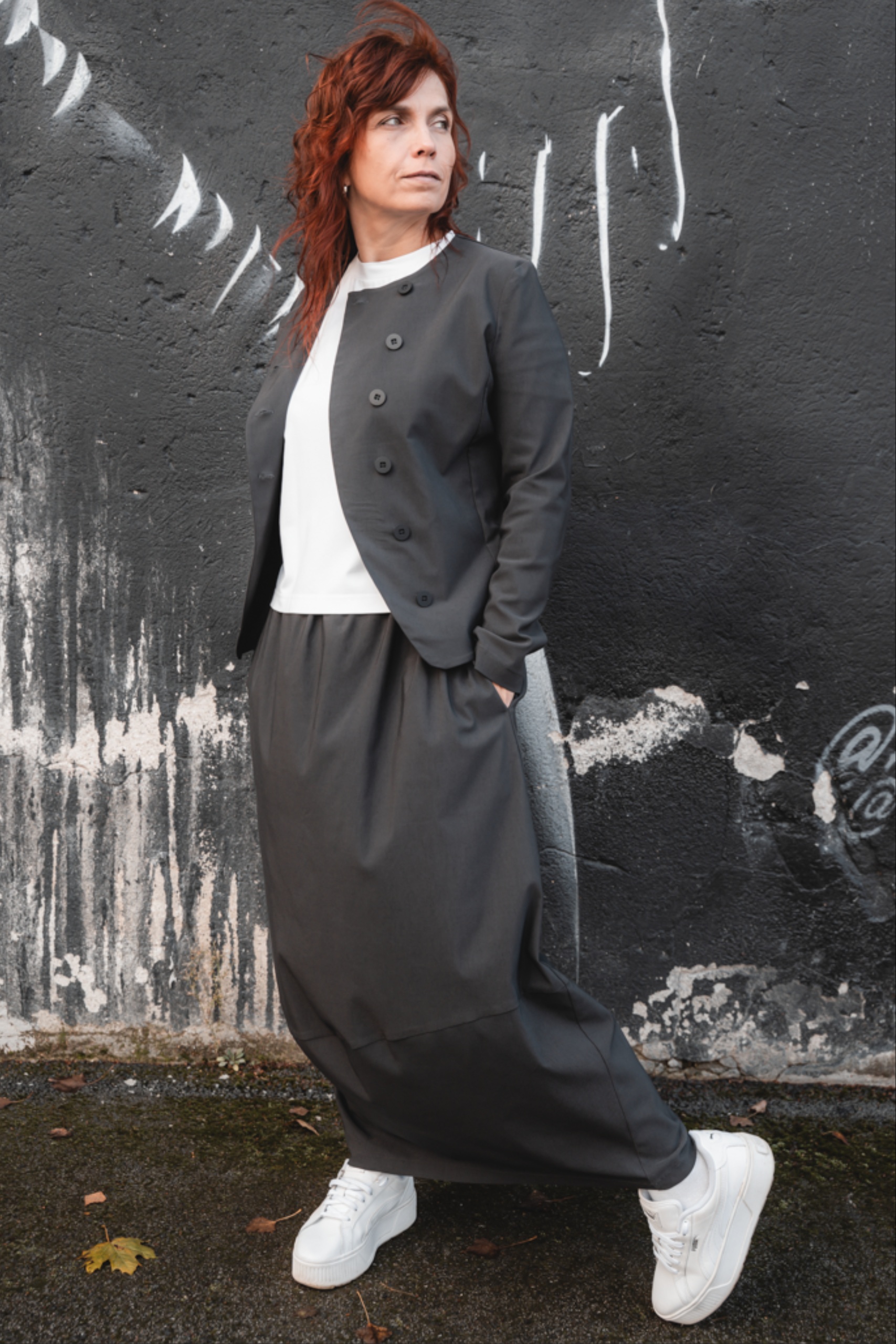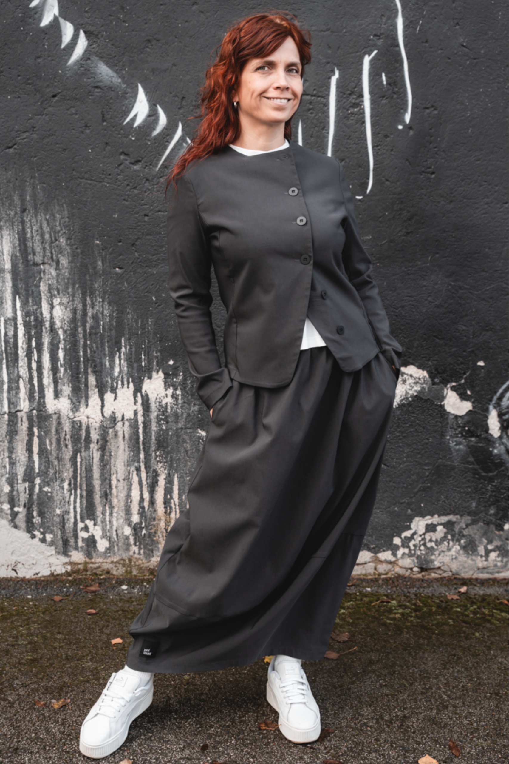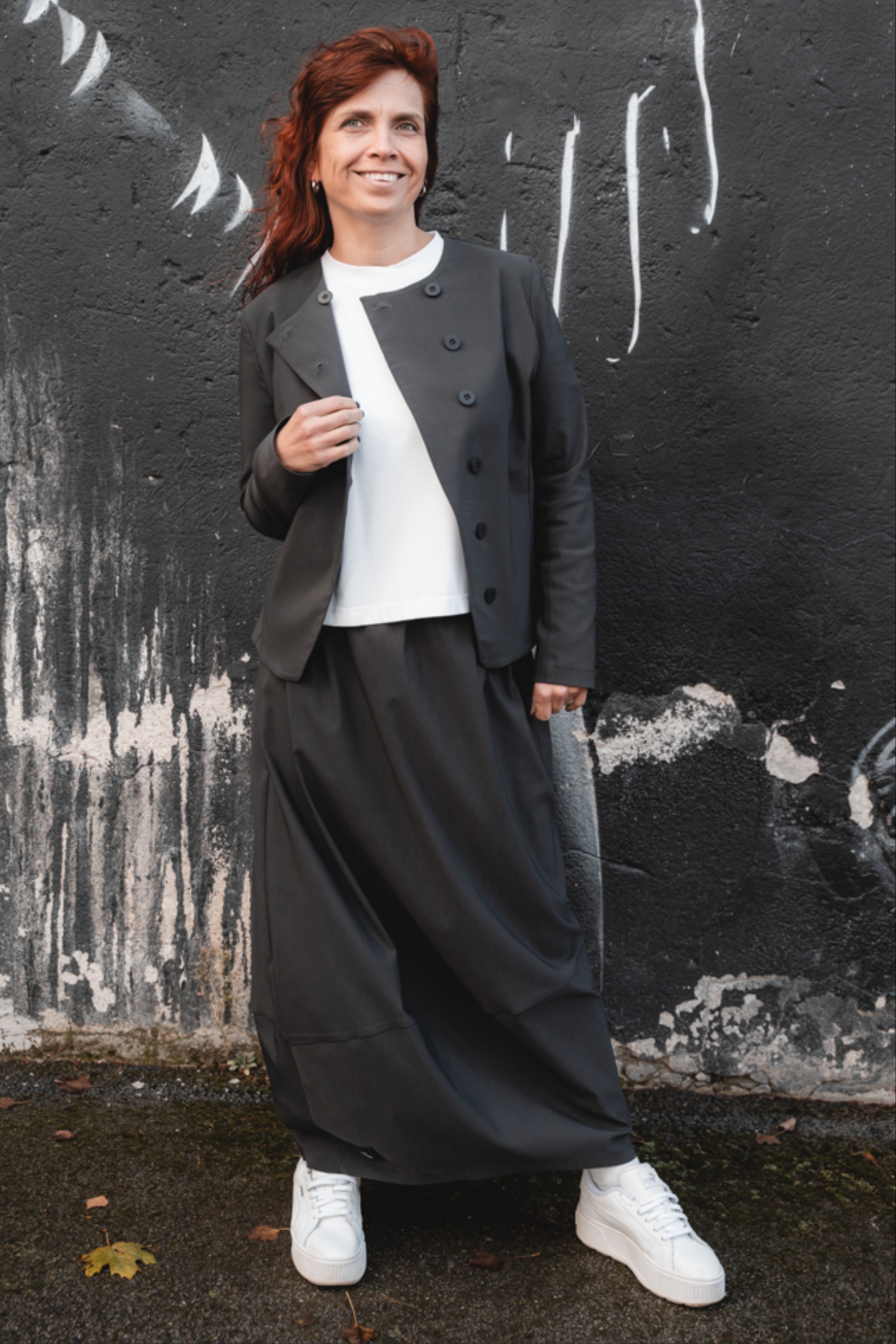 Minimalistliku lõike ja asümmeetrilise eest kinnitusega Fukumu jakk on loodud neile, kes hindavad selget joont ja mugavust. Ilma voodrita jakk on kerge ja mugav, sobides suurepäraselt nii sees kui väljas kandmiseks. Ümar kaelus ja kergelt kaarjas nööpidega esikinnis annavad jakile eripärase ilme. Must toon teeb sellest lihtsasti kombineeritava eseme, mis täiendab nii igapäevast kui ka pidulikumat riietust.
