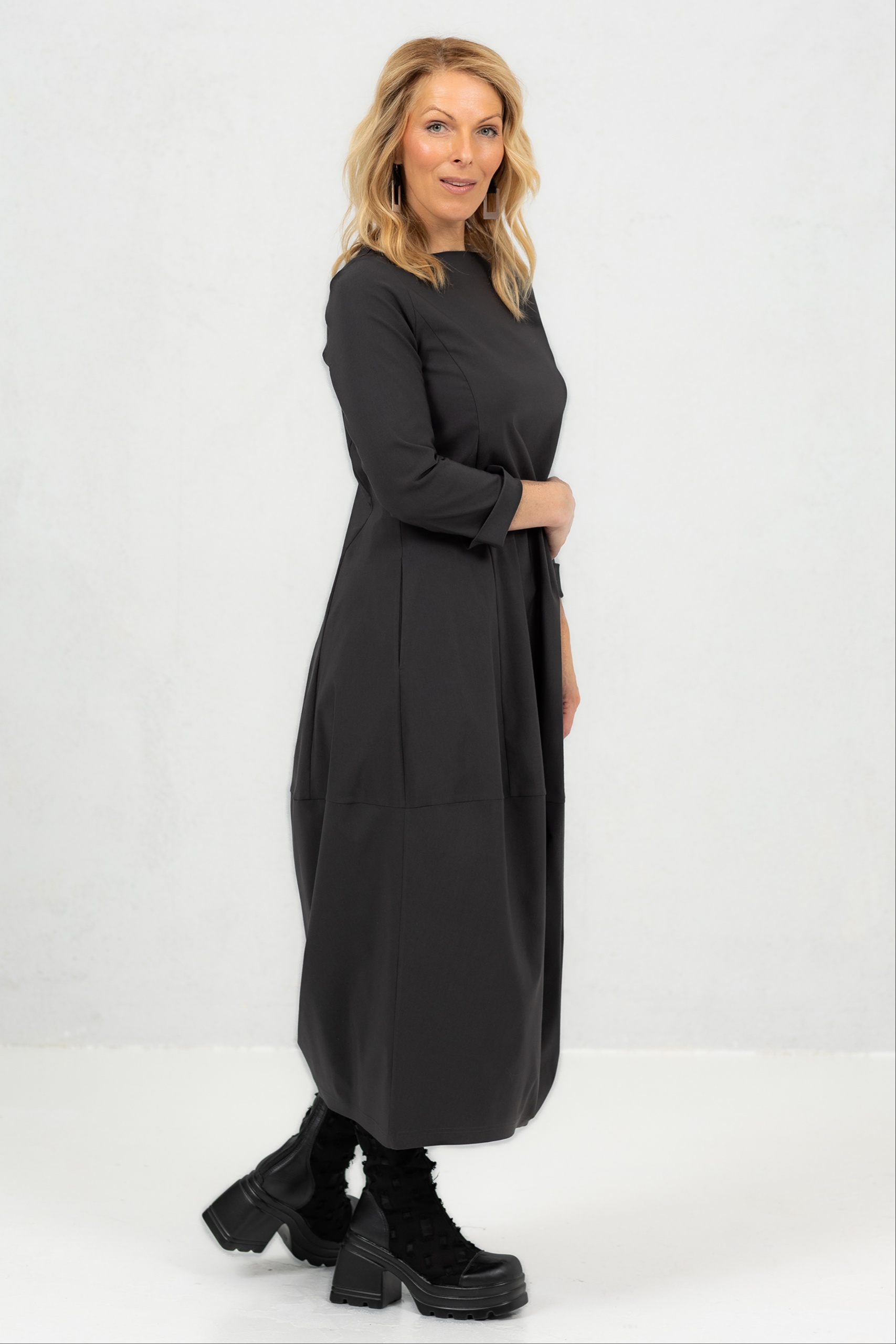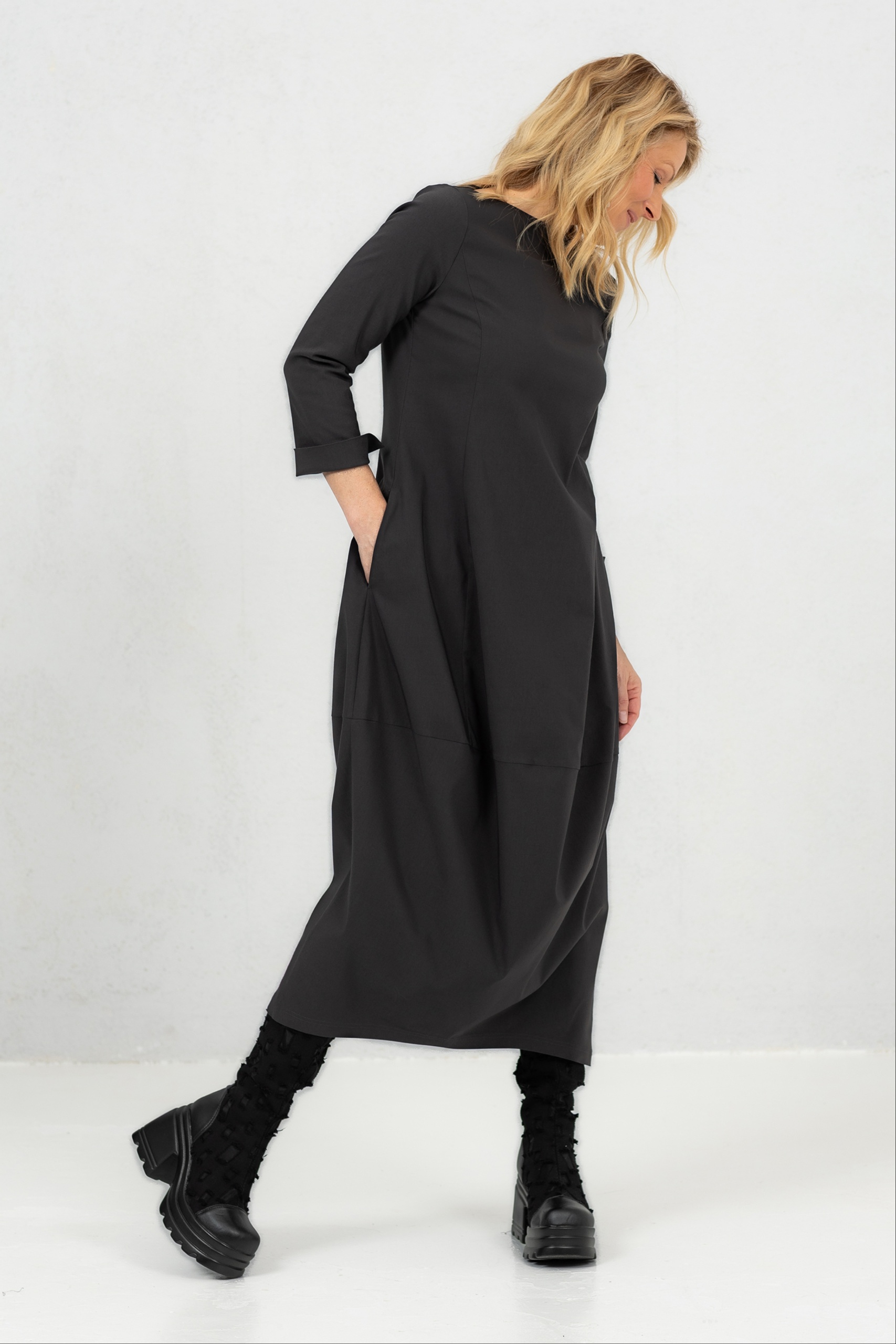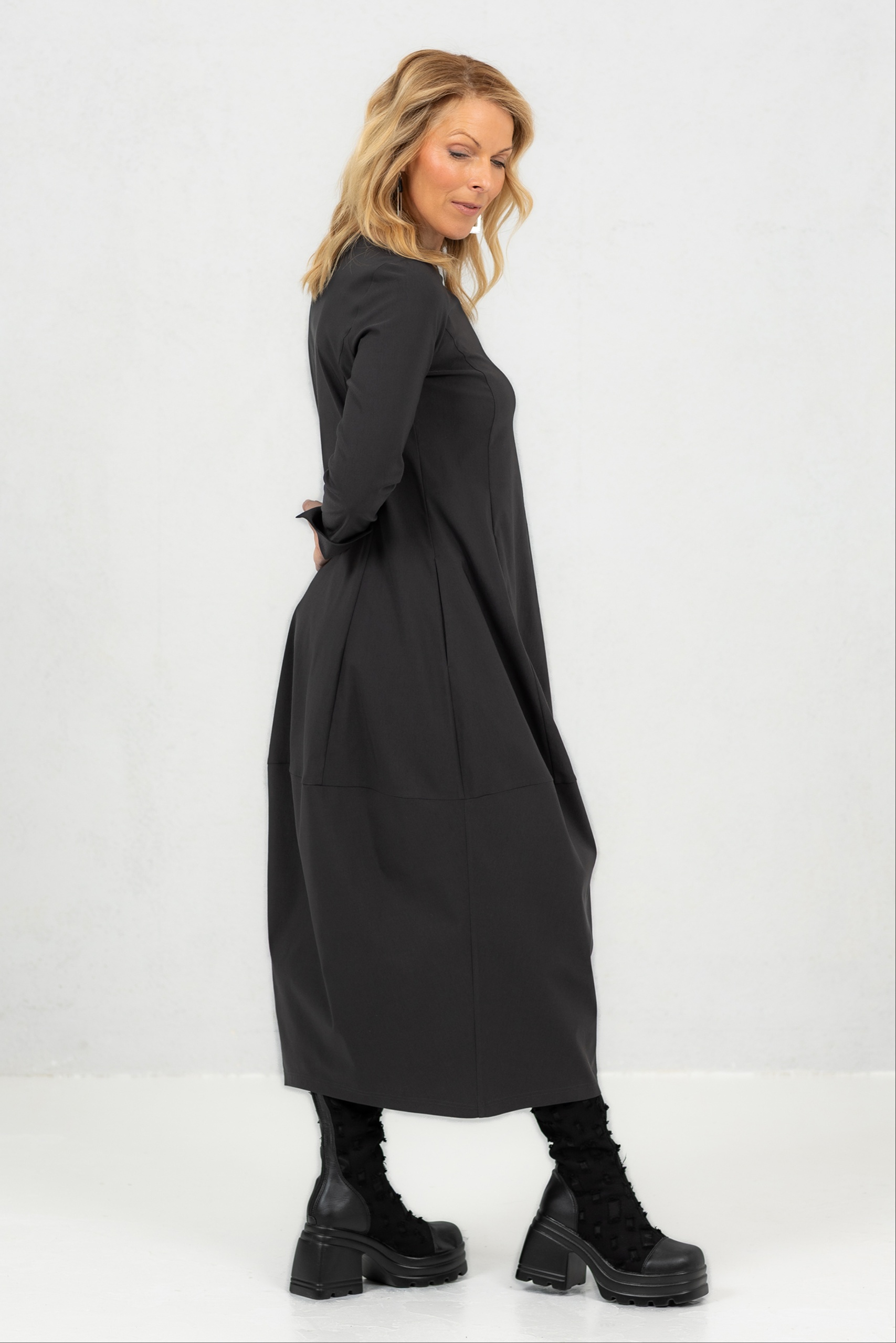 Akarui kleit on elegantsi ja mugavuse täiuslik kooskõla. See kleit on valmistatud viskooskangast, mis tagab suurepärase kandmismugavuse ja hoiab kauni kuju terve päeva. Kaasaegne balloonkleit on disainitud silmas pidades ajatut moekust, stiili ning liikumisvabadust. Kleidi minimalistlik ja läbimõeldud disain rõhutab kandja figuuri. Midi pikkus sobib ideaalselt nii kontorisse kui ka pidulikumateks sündmusteks, muutes selle garderoobi mitmekülgseks täienduseks. Kombineeri kleit kontrastsete aksessuaaridega või jäta look minimalistlikuks, et kleit saaks tõeliselt särada. See on ideaalne valik moeteadlikule ja erilist stiili armastavale naisele.