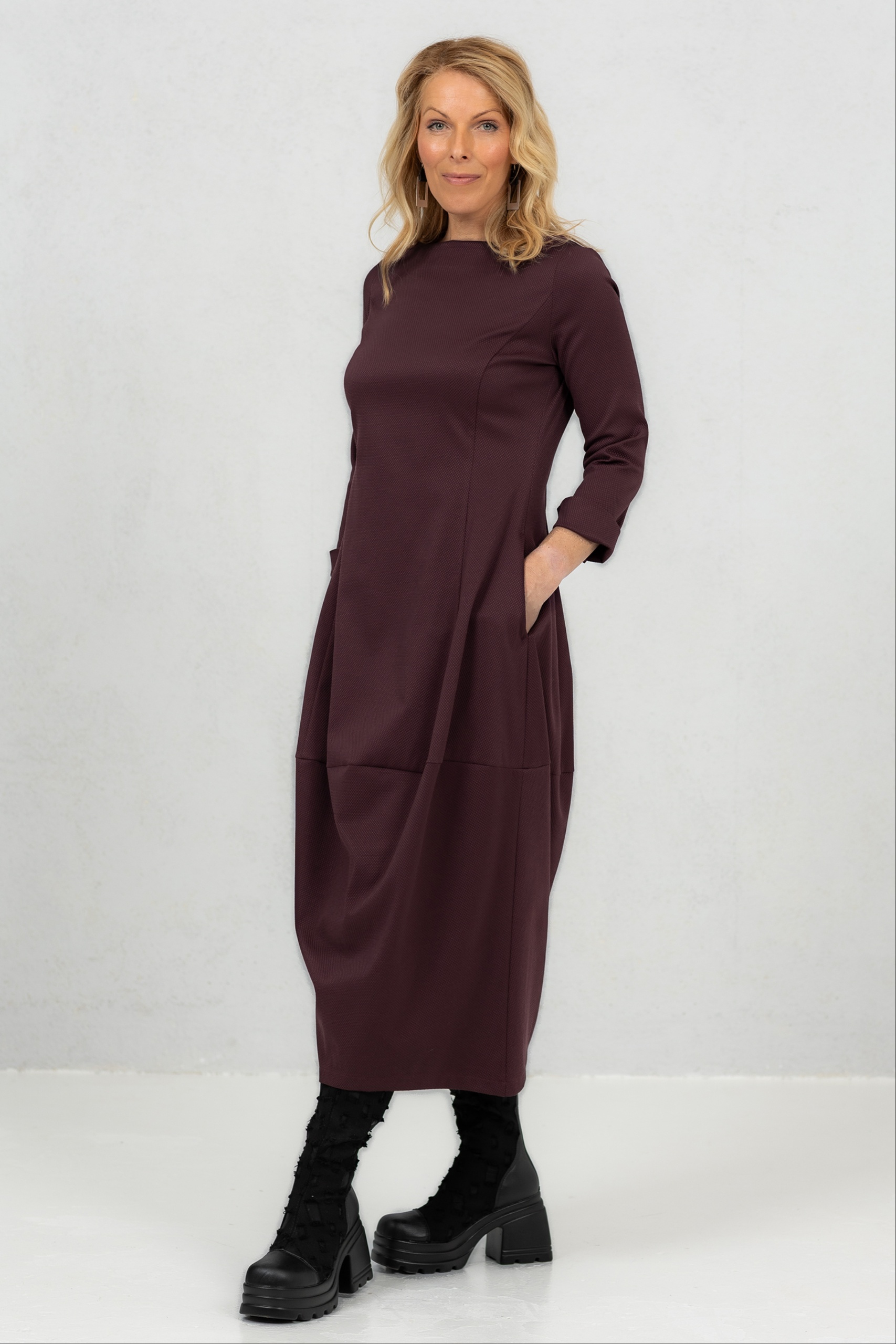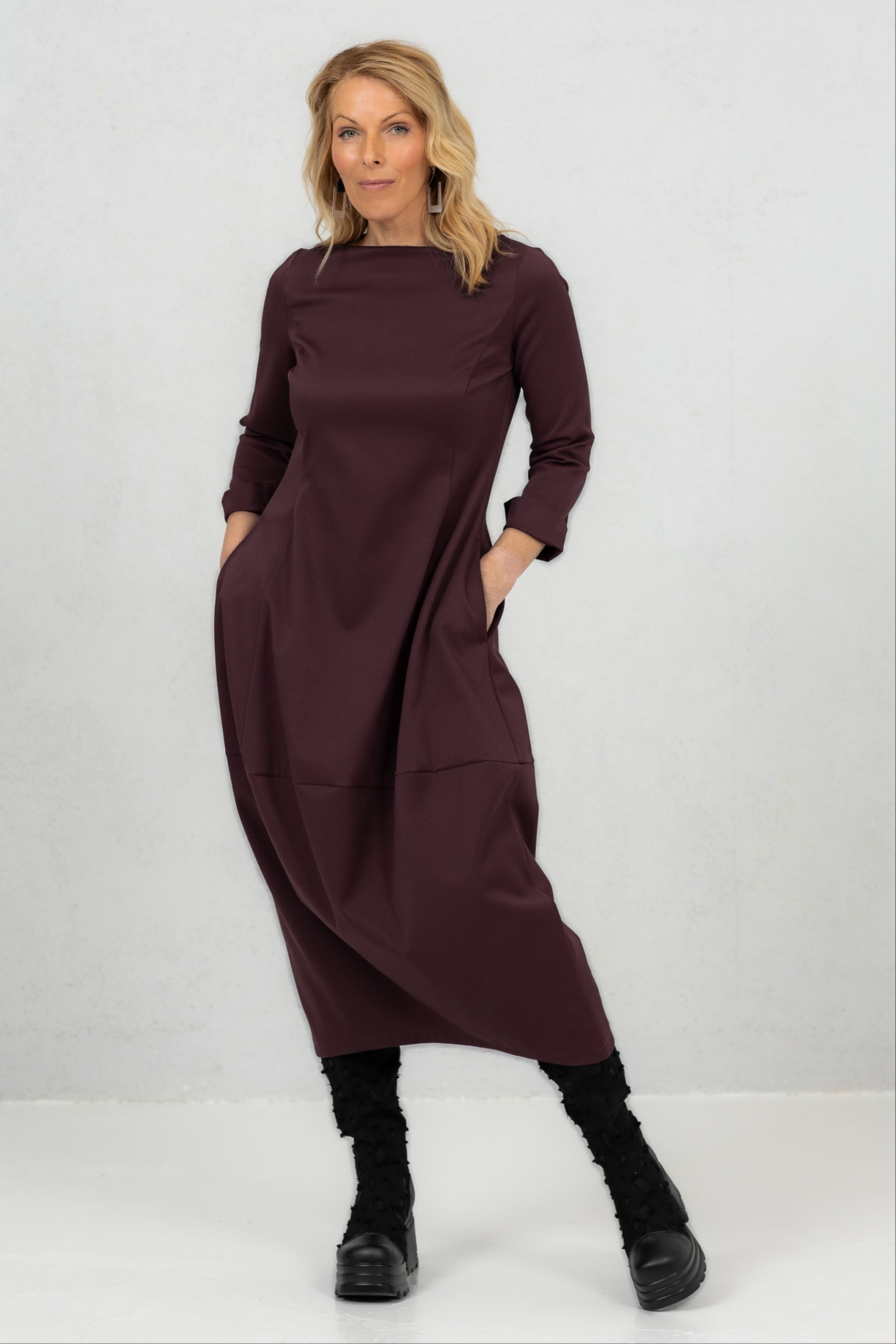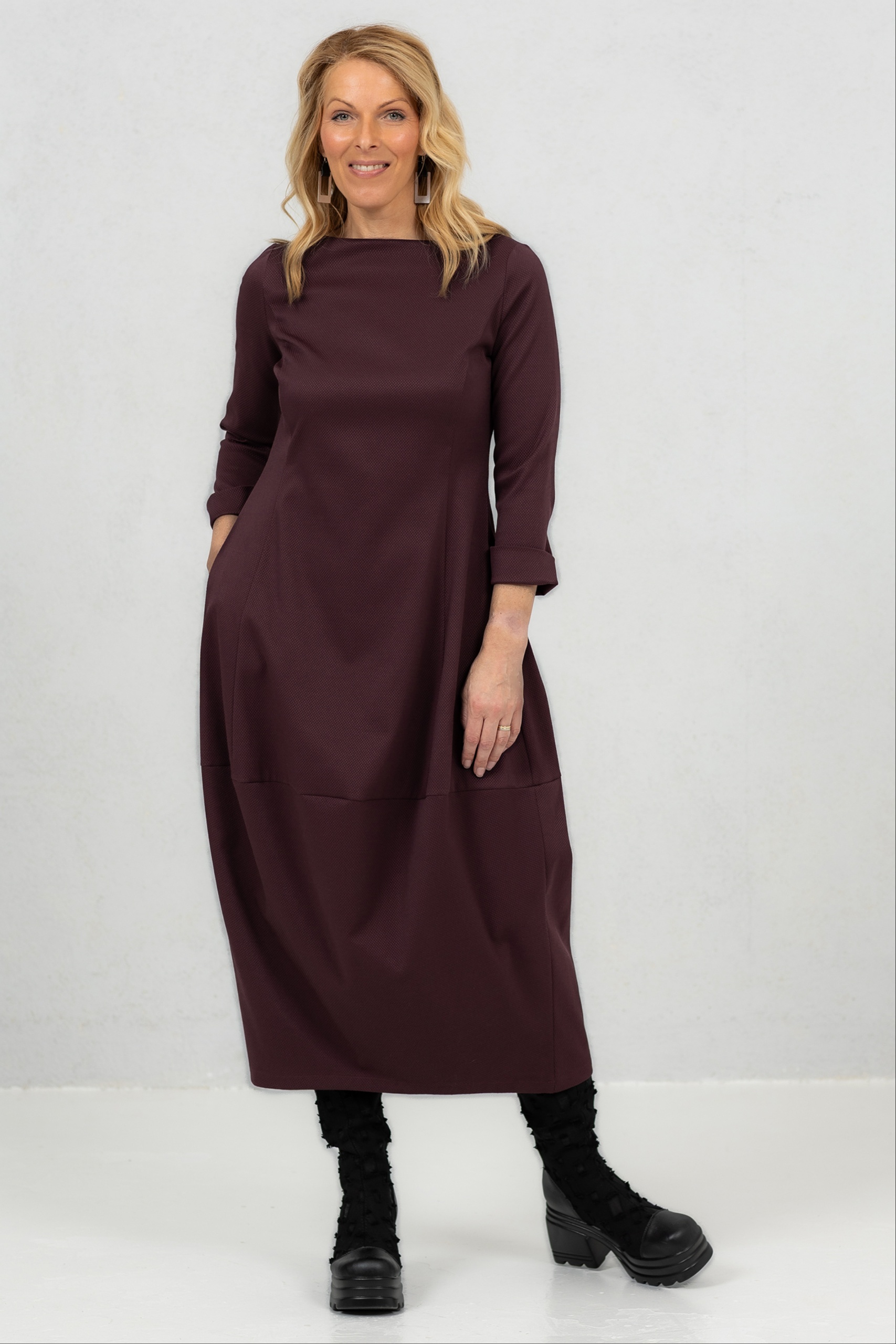 Meie armastatud Akarui kleit nüüd pidulikumas võtmes – loodud särama erilisematel hetkedel. Luksuslik, kergelt läikiv tekstuurne mahe ploomililla kangas lisab klassikalisele lõikele elegantsi ja pidulikkust, samas säilitades kleidi iseloomuliku lihtsuse ja kandmismugavuse. Kaasaegne balloon-lõige rõhutab figuuri ilma liikumisvabadust piiramata, muutes selle kleidi täiuslikuks valikuks nii peole kui ka pidulikumale päevale.
