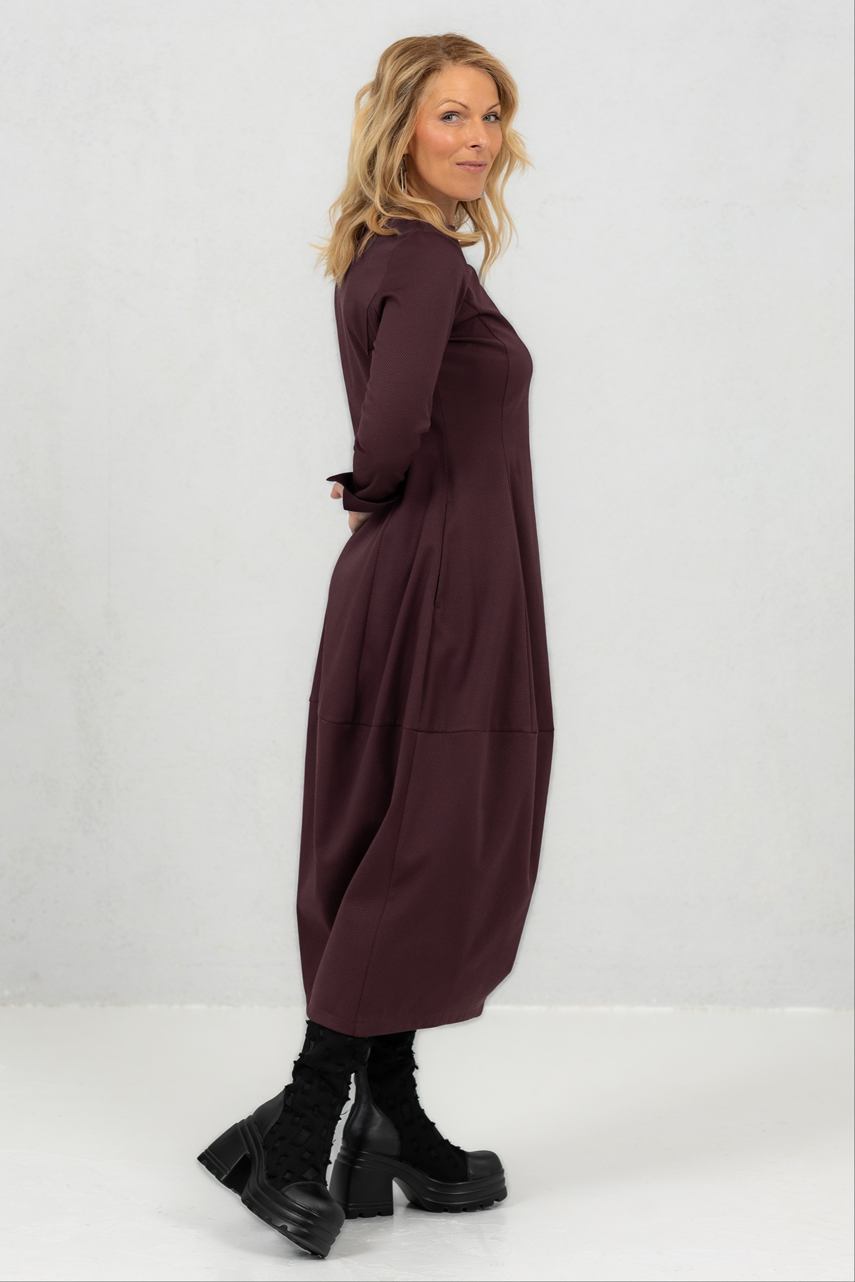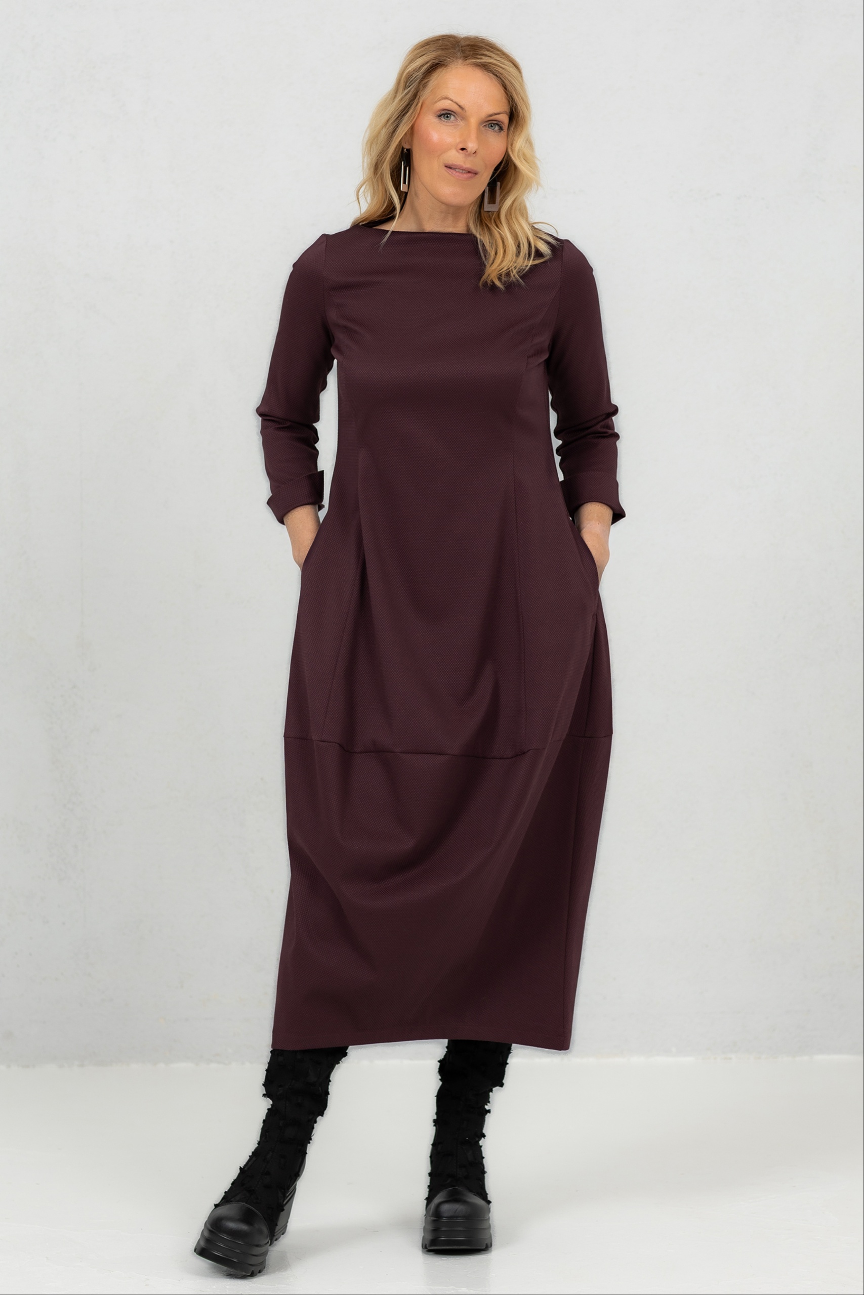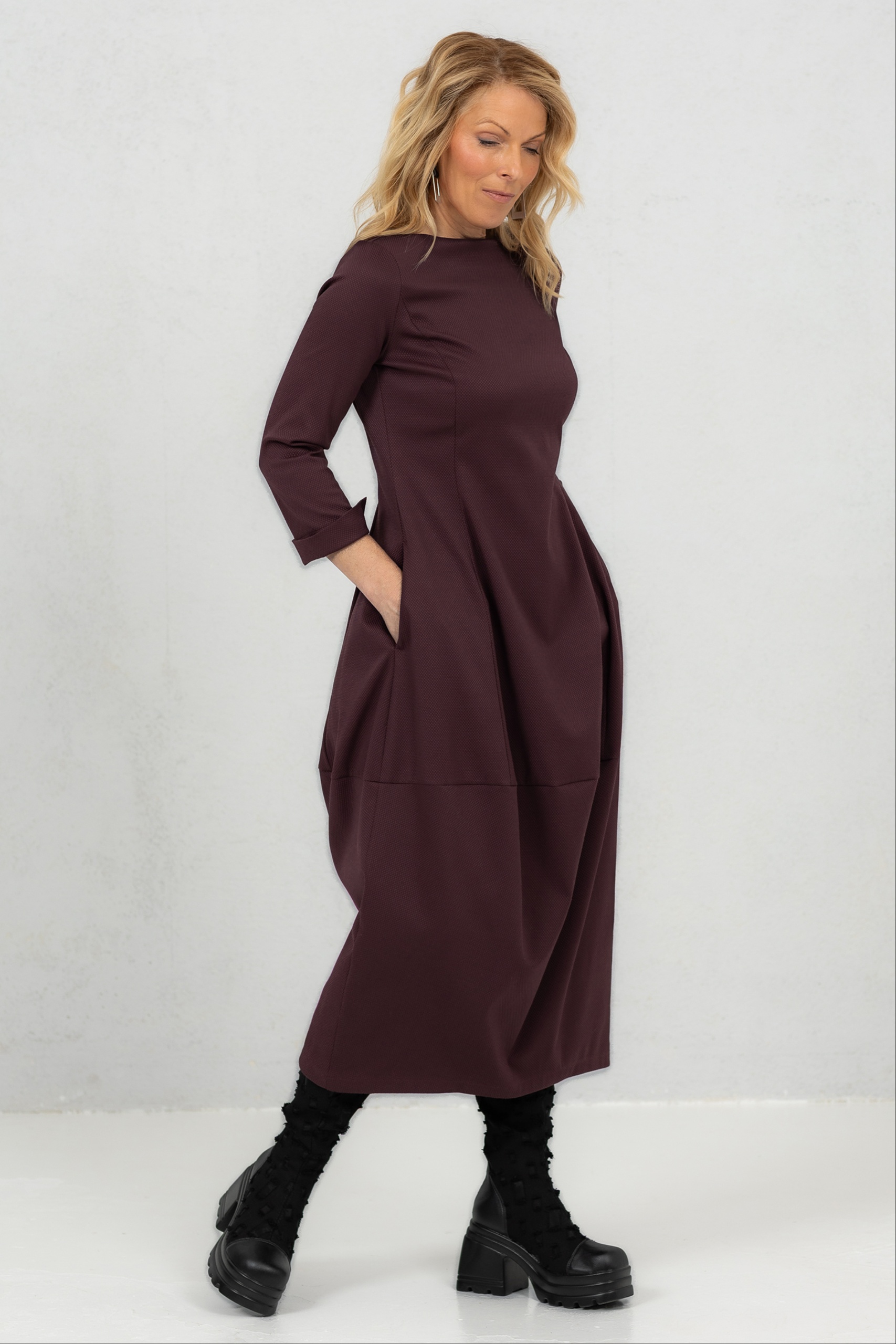 Meie armastatud Akarui kleit nüüd pidulikumas võtmes – loodud särama erilisematel hetkedel. Luksuslik, kergelt läikiv tekstuurne mahe ploomililla kangas lisab klassikalisele lõikele elegantsi ja pidulikkust, samas säilitades kleidi iseloomuliku lihtsuse ja kandmismugavuse. Kaasaegne balloon-lõige rõhutab figuuri ilma liikumisvabadust piiramata, muutes selle kleidi täiuslikuks valikuks nii peole kui ka pidulikumale päevale.