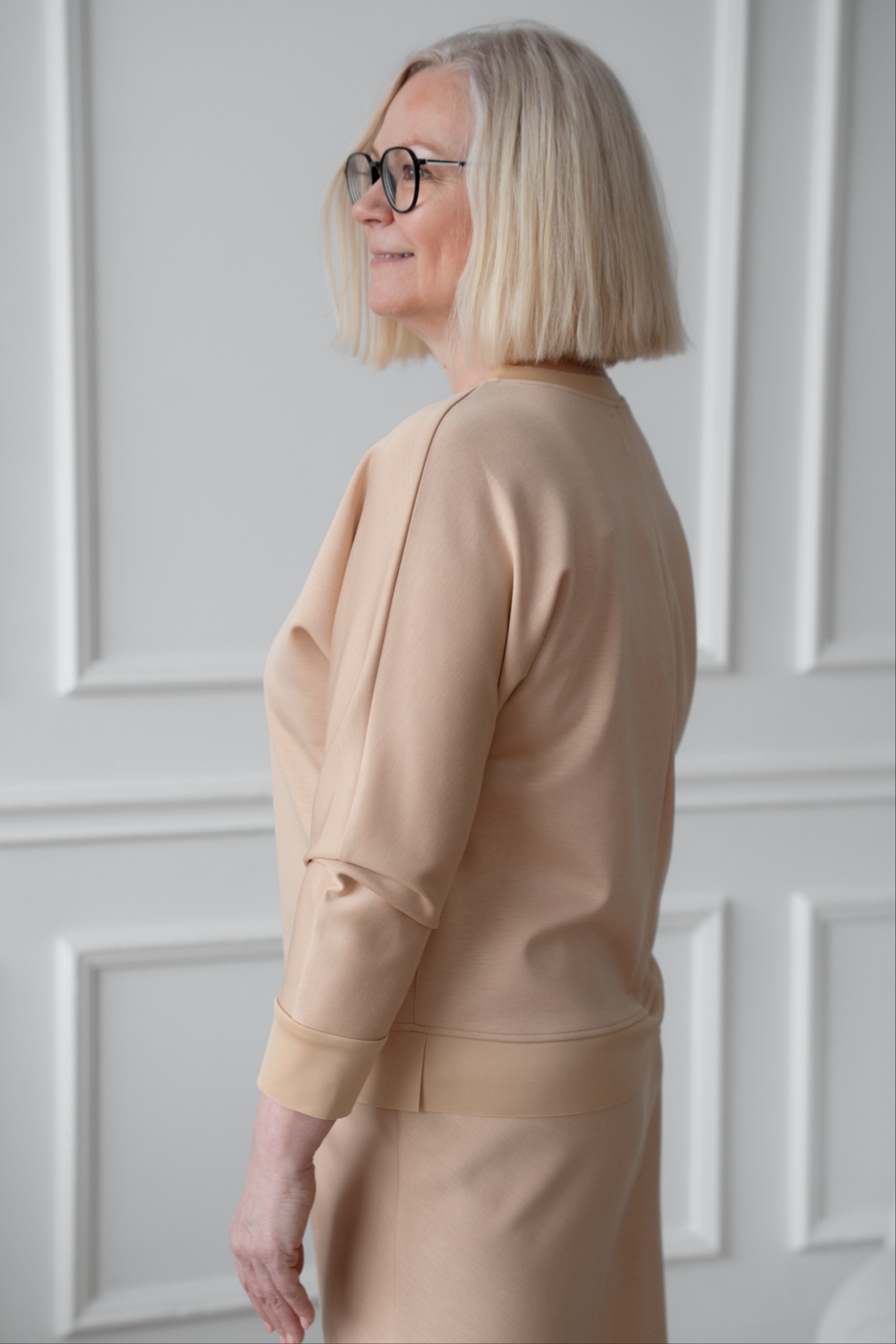 See kleit on valmistatud pehmest ja mõnusast scuba-tüüpi kangast, mis on paksem, sile ja kaunilt vormi hoidev. Tegemist on elastse trikookangaga, mis tundub nahal üllatavalt pehme ja soe. Viskoos lisab materjalile hingavust ja siidist pehmust, polüester aitab säilitada kuju ning elastaan tagab mugava liikumisvabaduse. Kangas ei kortsu kergesti ja hoiab oma ilusa vormi ka pikema kandmise järel. Tulemuseks on luksuslikult pehme, kuid samas enesekindlalt vormi hoidev materjal, milles tunned end hästi kogu päeva.