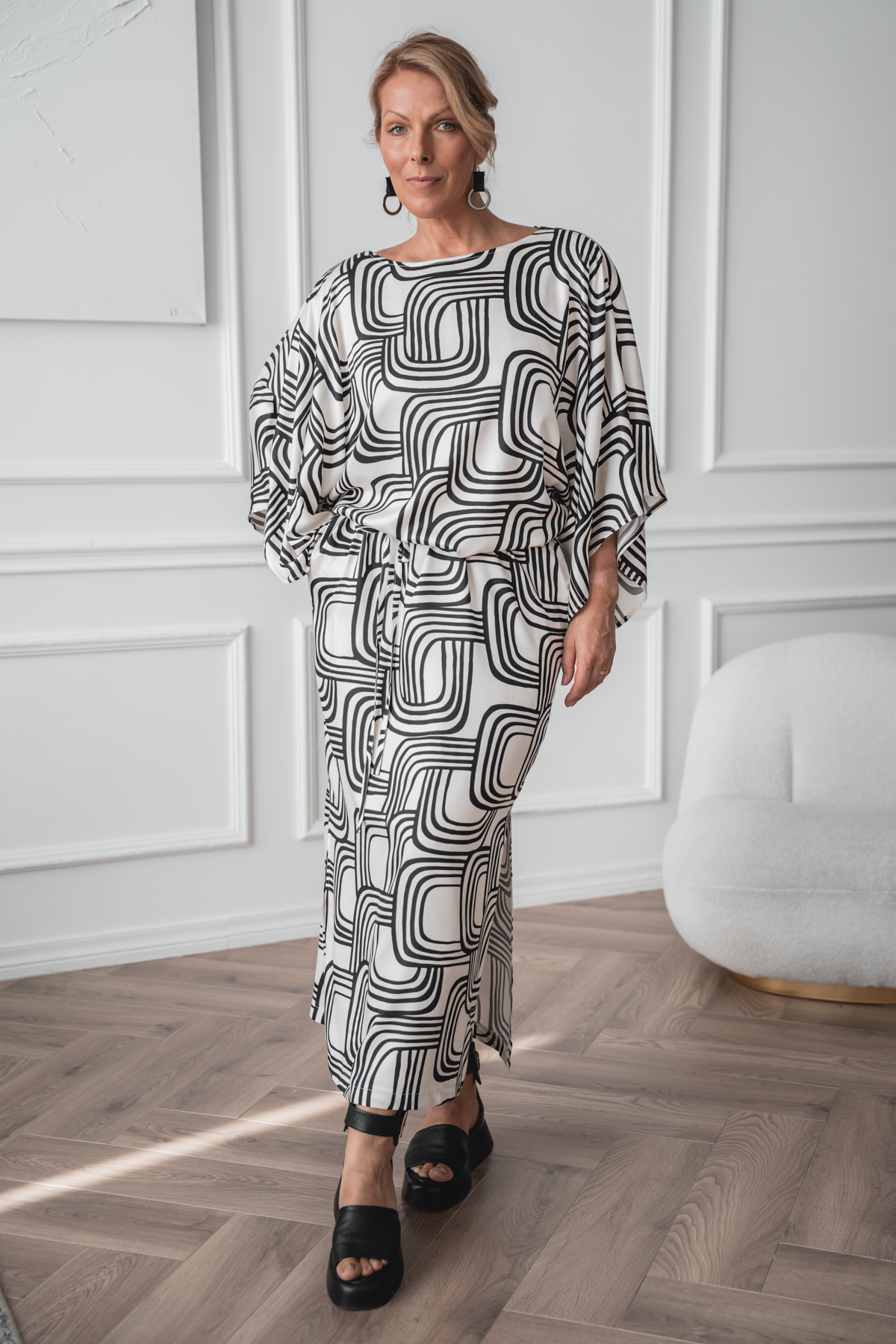 See kangas on pehme, kerge ja siidise puudutusega, pakkudes nahal eriti mõnusat tunnet. Tänu oma hingavusele sobib see ideaalselt soojemateks päevadeks, hoides keha jahedana ja mugavana. Kangas langeb kaunilt ja loob liikuva, elegantse silueti. Looduslikust kiust valmistatud viskoos annab rõivale luksusliku välimuse ning teeb selle kandmise eriti nauditavaks.
