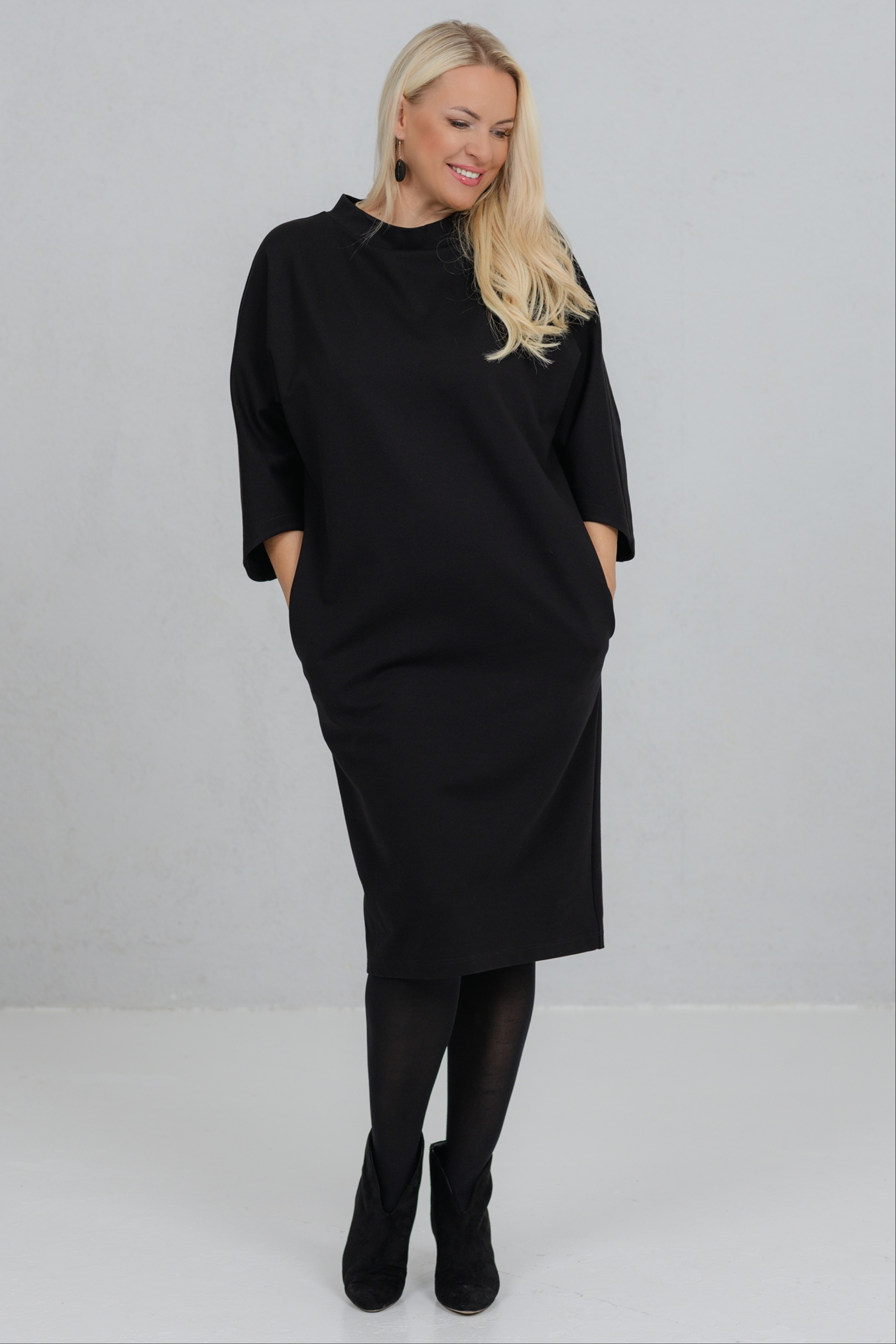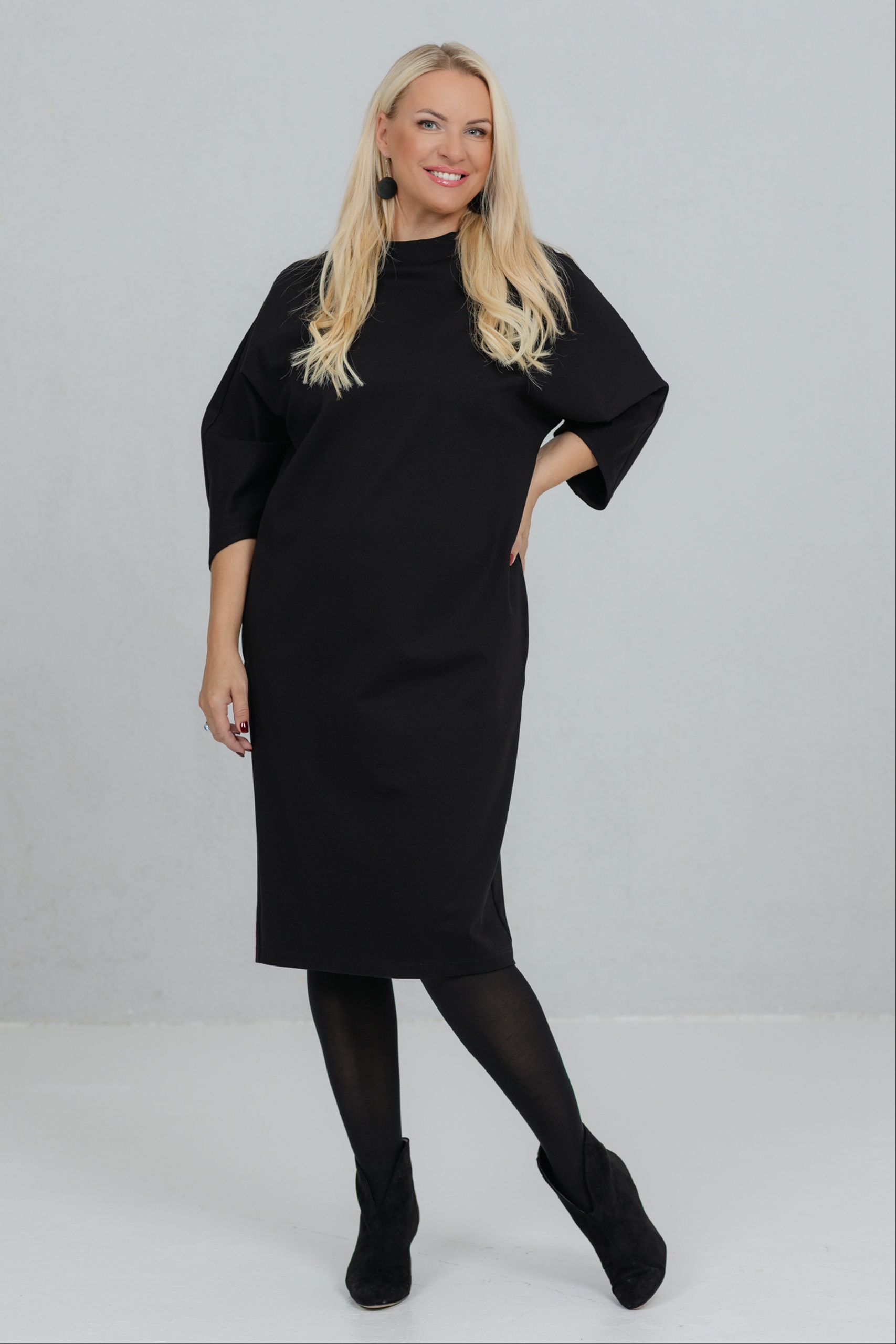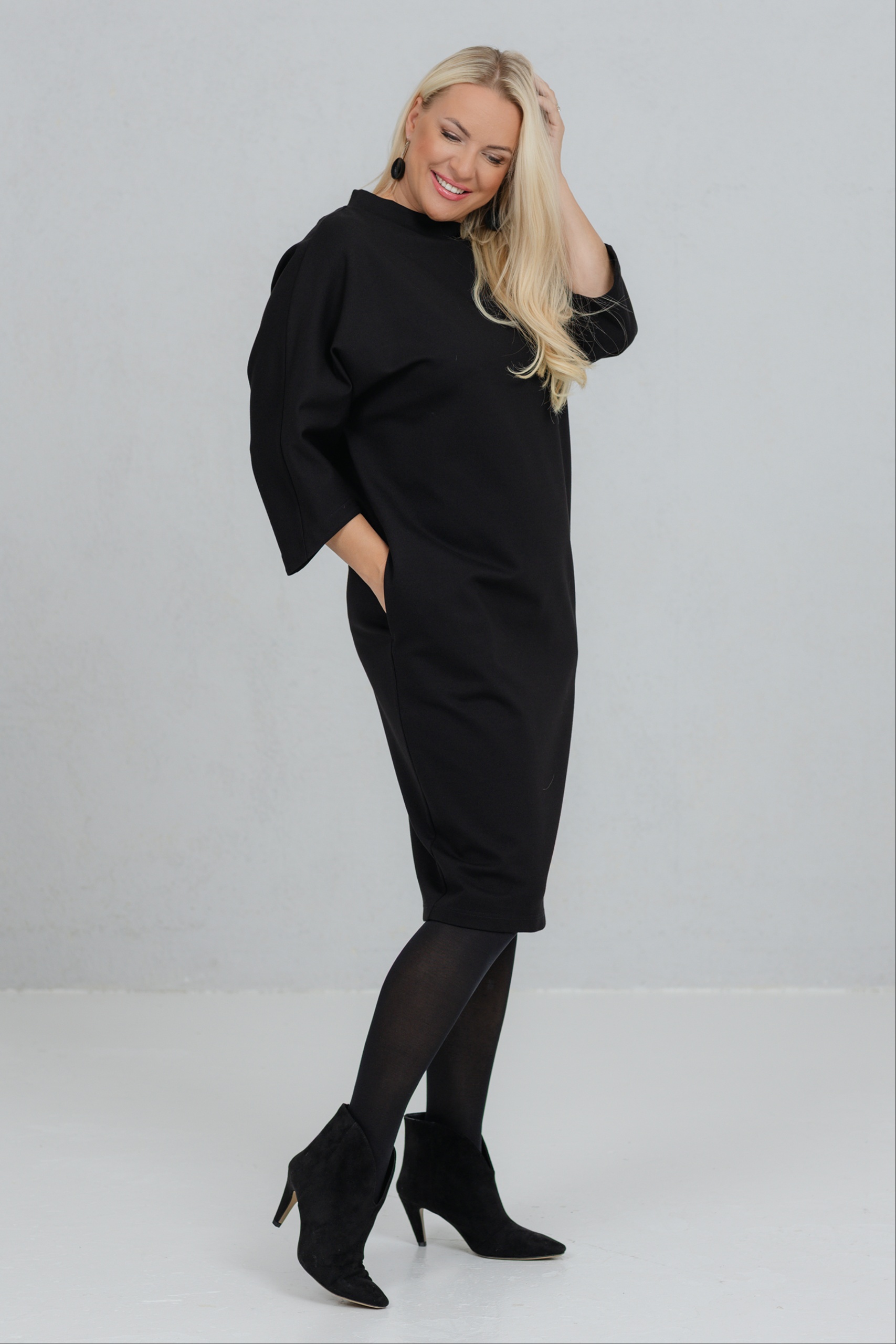 Opereta on selge joonega must kleit, mis ühendab minimalistliku vormi ja naiseliku jõu. Selle kleidi V-lõikeline siluett sobib ideaalselt erinevatele figuuridele. Avarad, kergelt langevad varrukad lisavad liikumisvabadust ja iseloomu. Paksem viskooskangas hoiab hästi vormi. Opereta on valik naisele, kes hindab vaikset elegantsi ja teadlikku kohalolu.