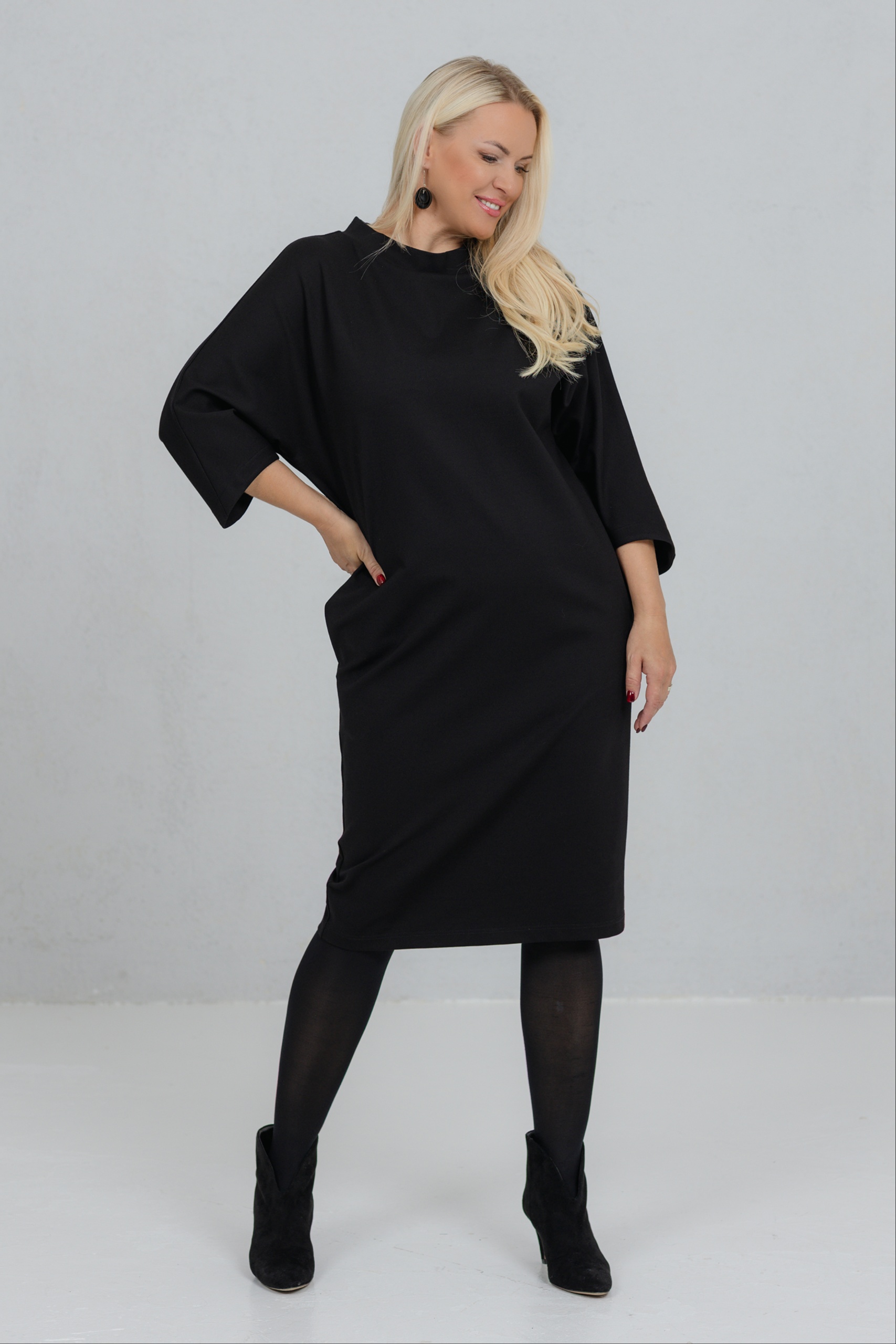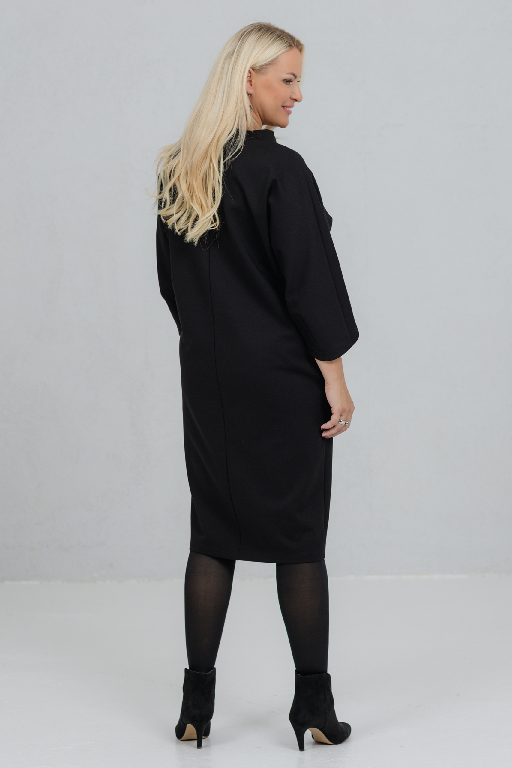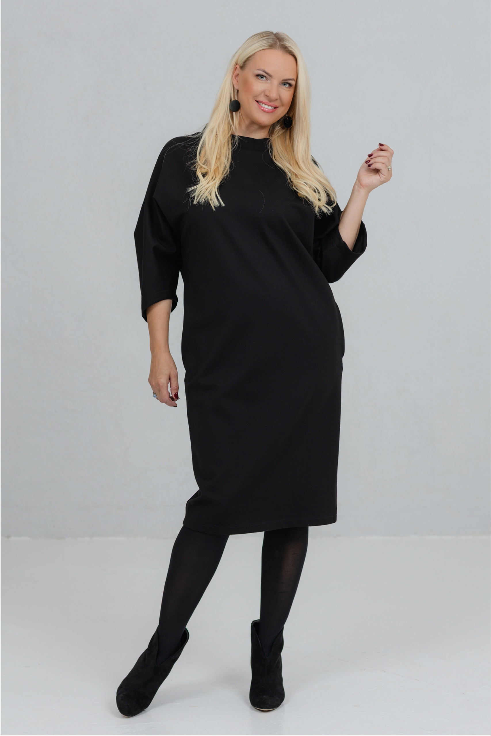 Opereta on selge joonega must kleit, mis ühendab minimalistliku vormi ja naiseliku jõu. Selle kleidi V-lõikeline siluett sobib ideaalselt erinevatele figuuridele. Avarad, kergelt langevad varrukad lisavad liikumisvabadust ja iseloomu. Paksem viskooskangas hoiab hästi vormi. Opereta on valik naisele, kes hindab vaikset elegantsi ja teadlikku kohalolu.