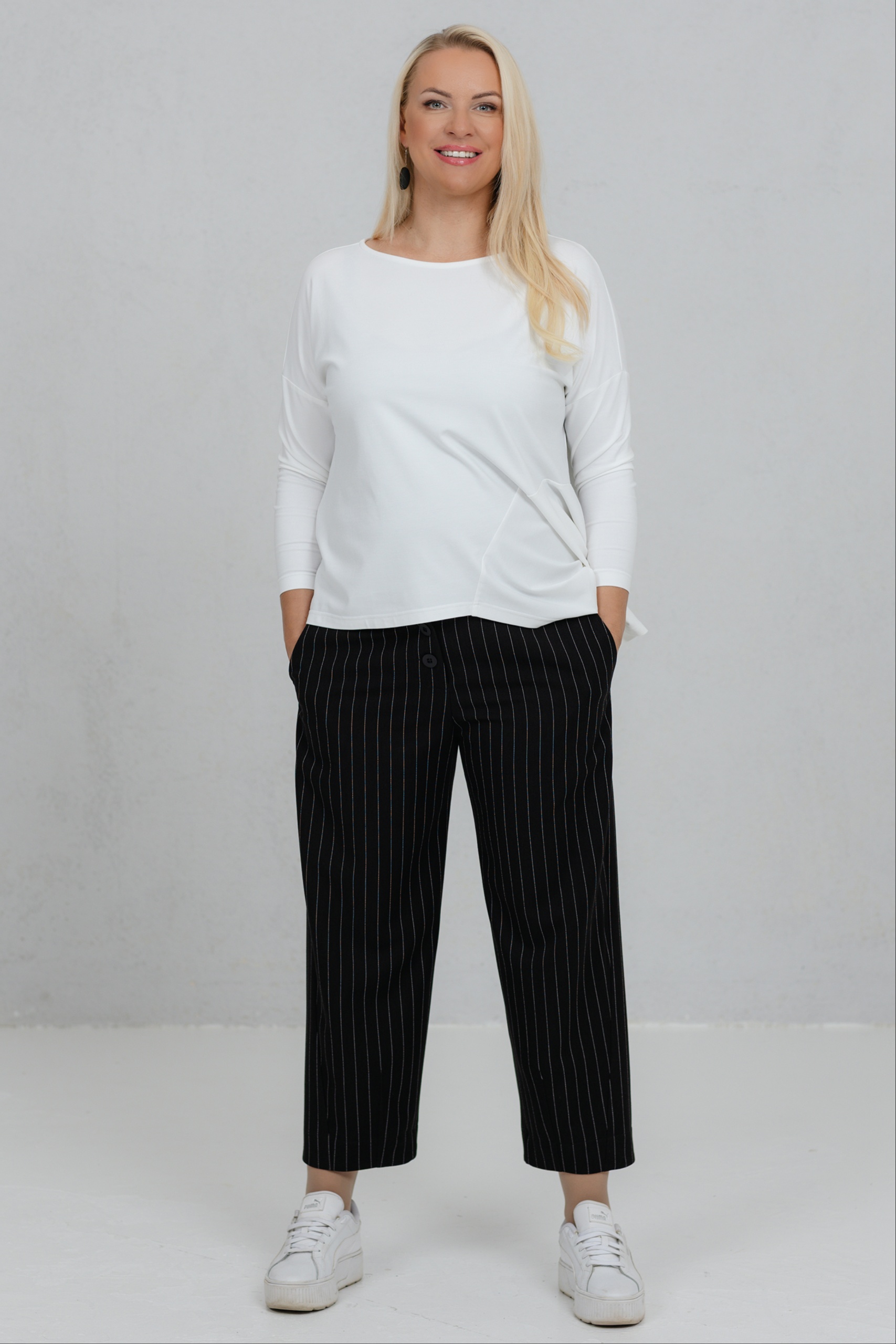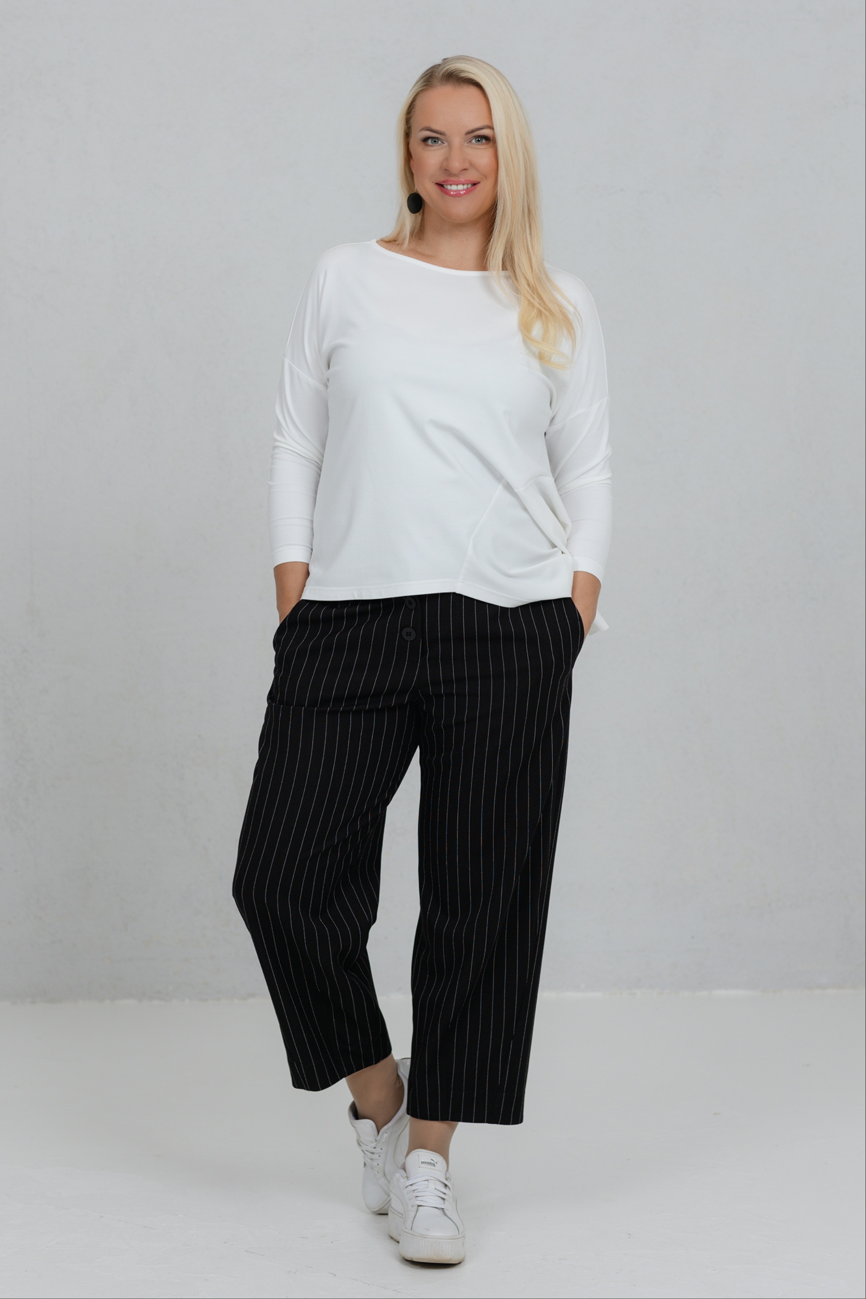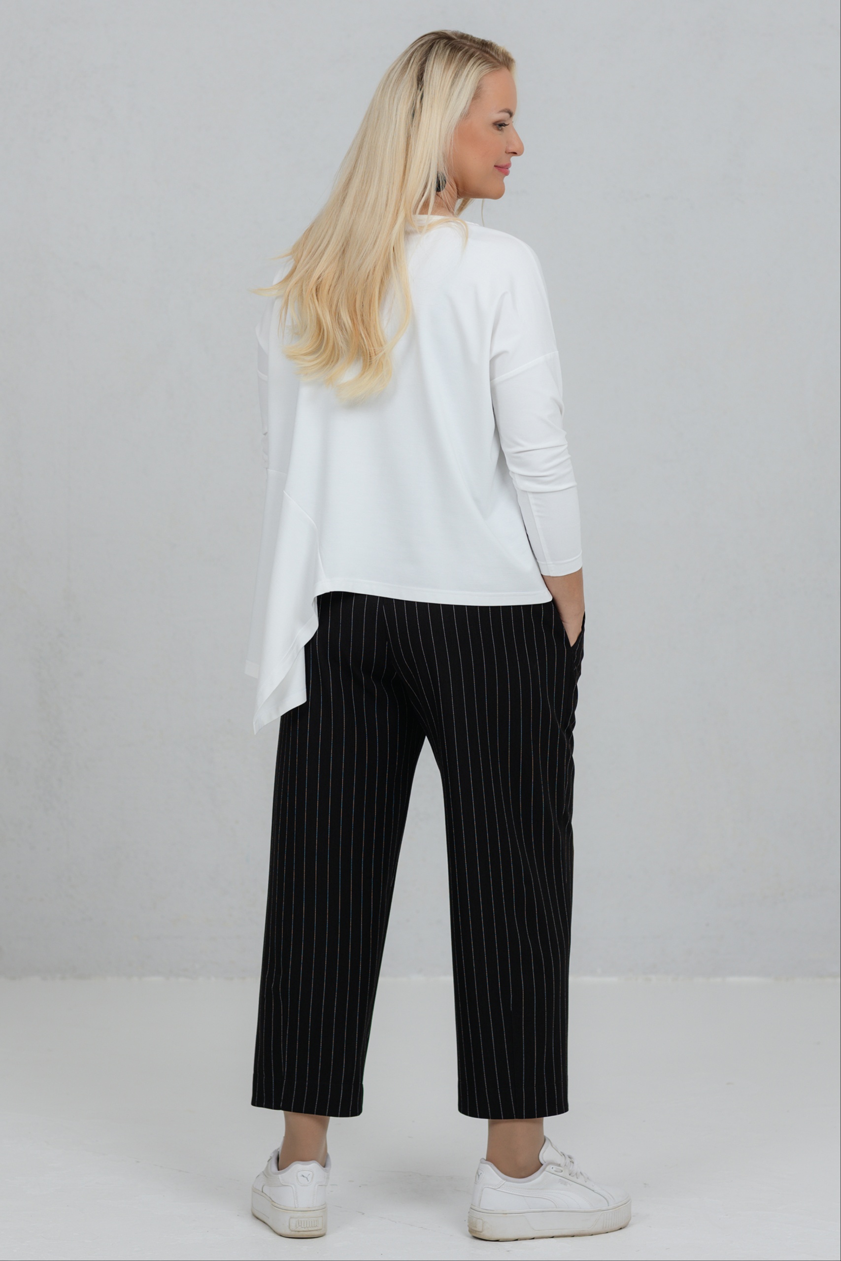 Tsuba, must-valge triibuga elegantsed püksid