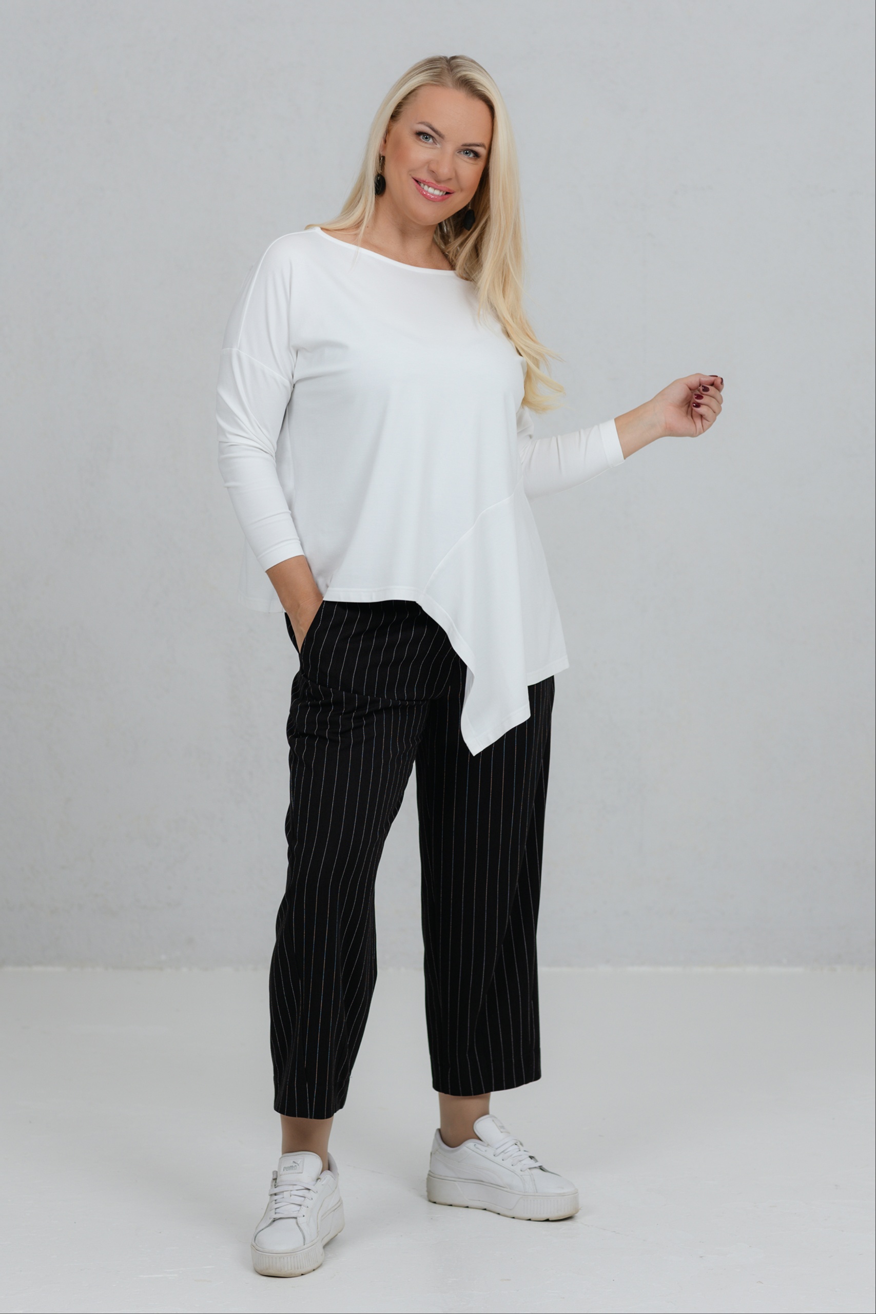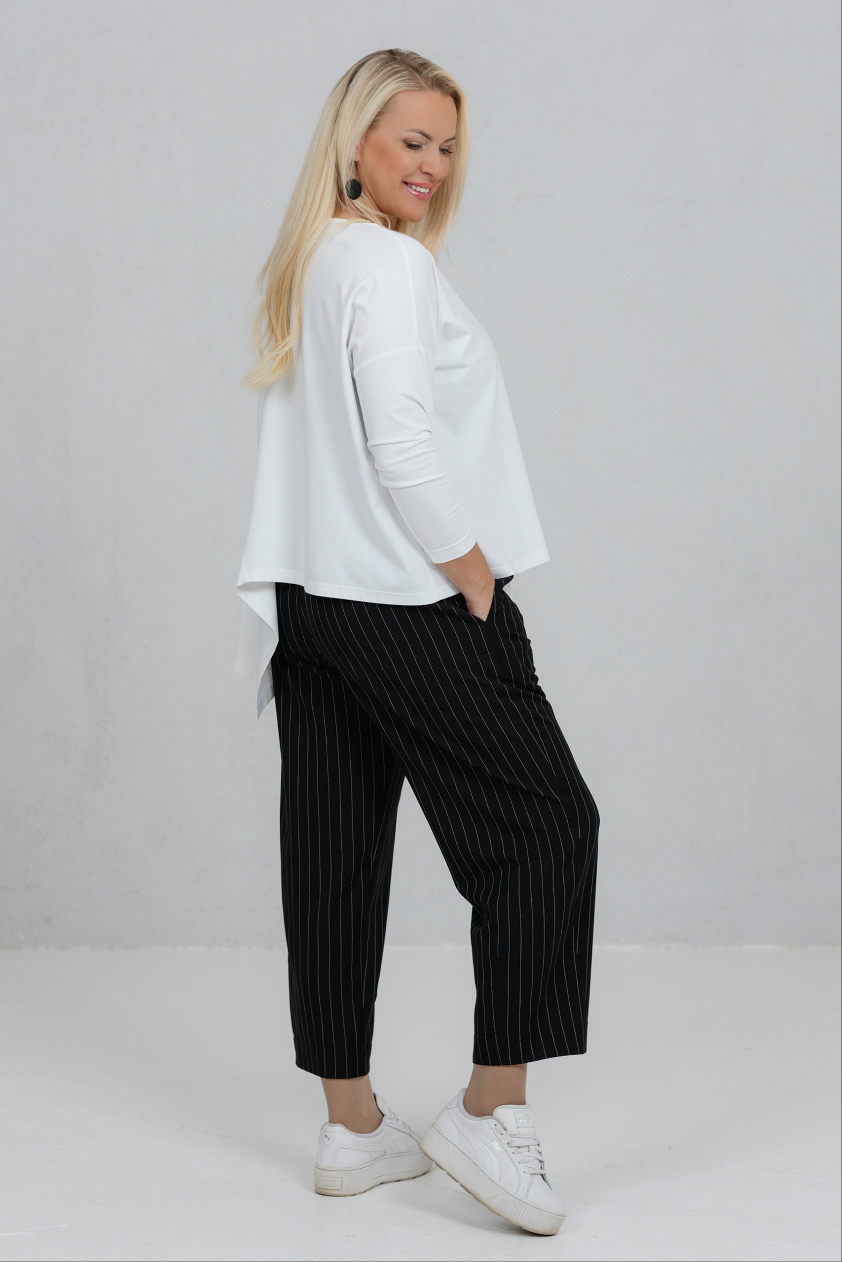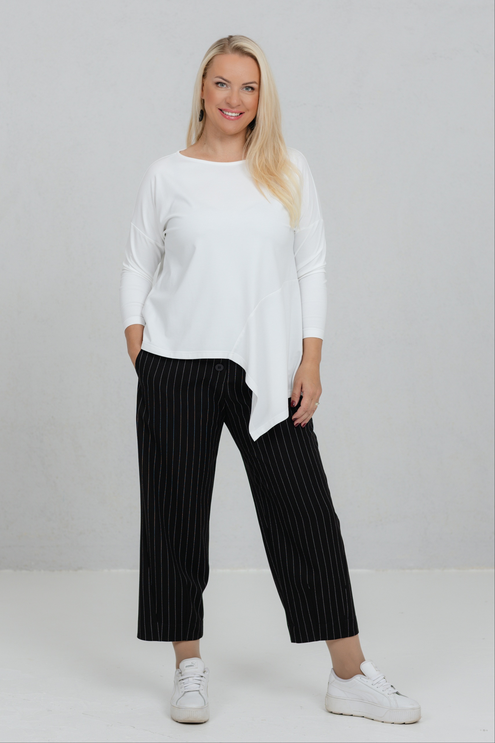 Tsuba, must-valge triibuga elegantsed püksid