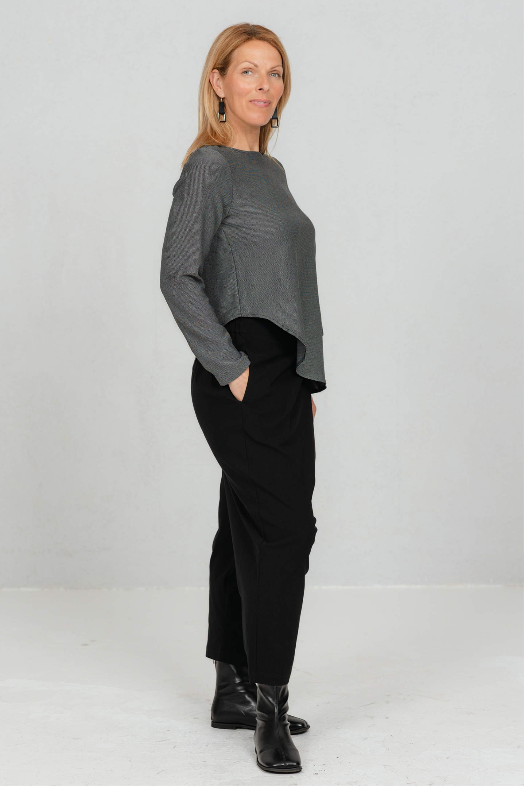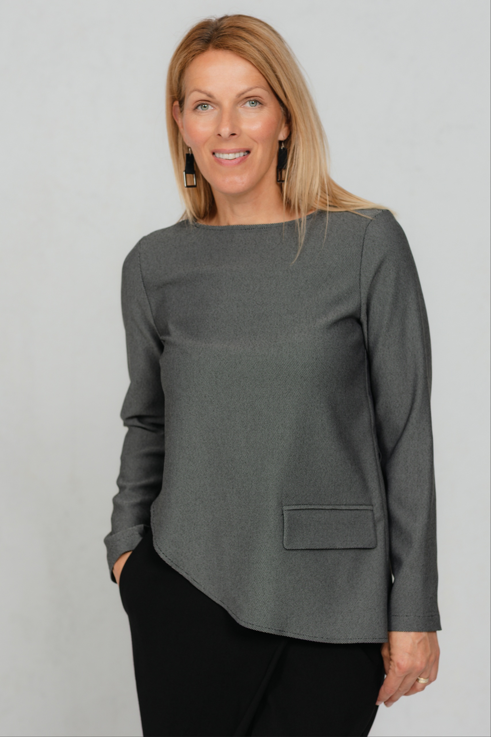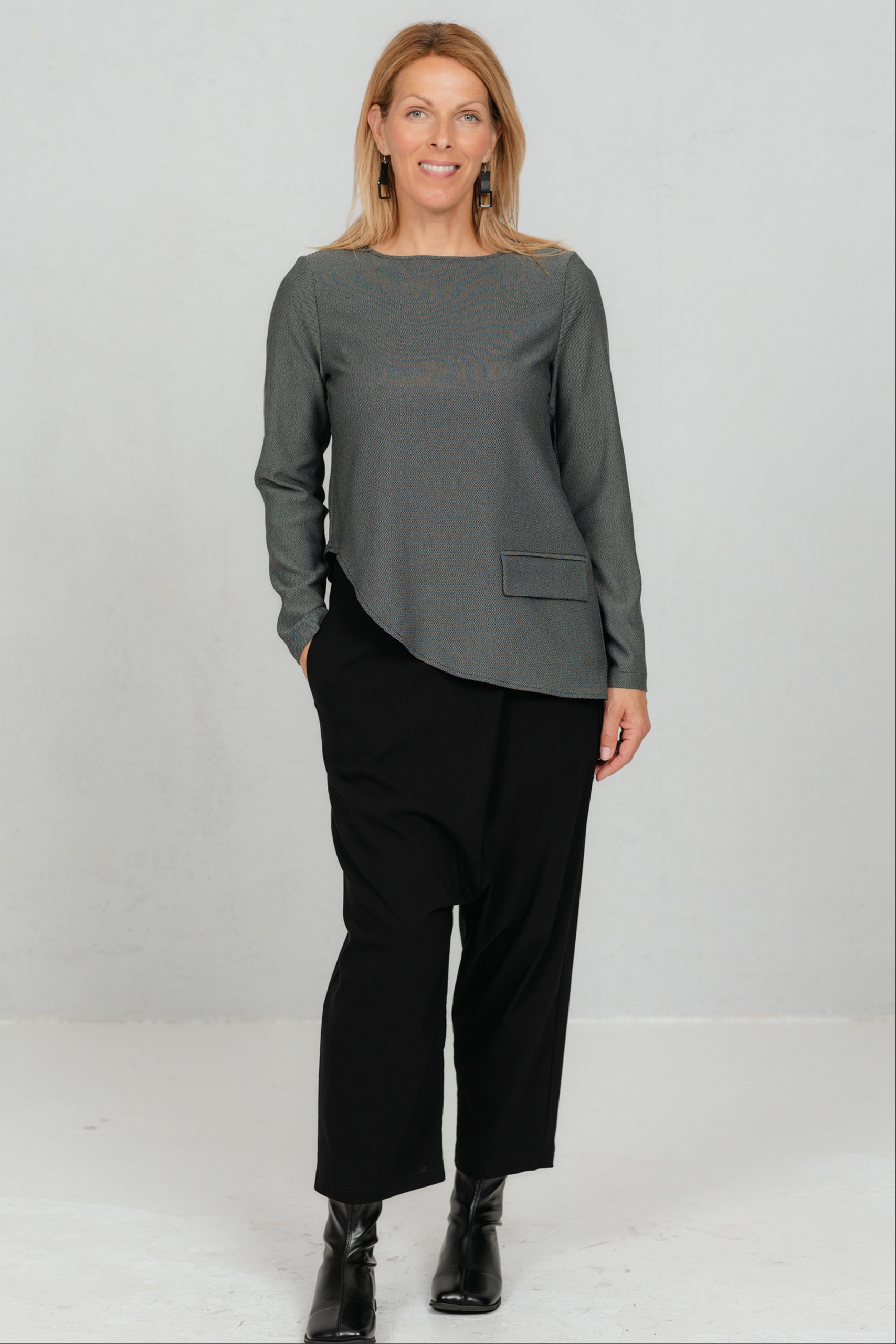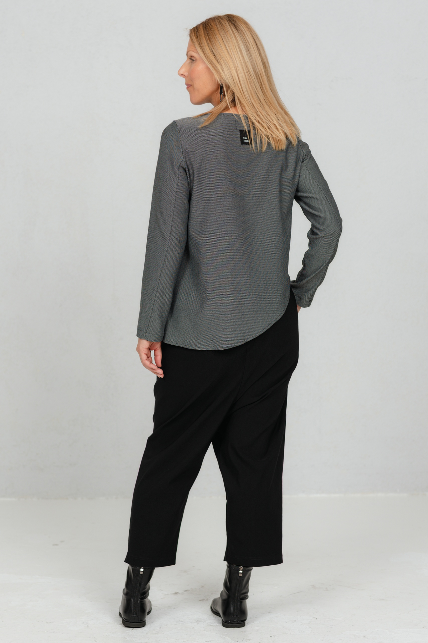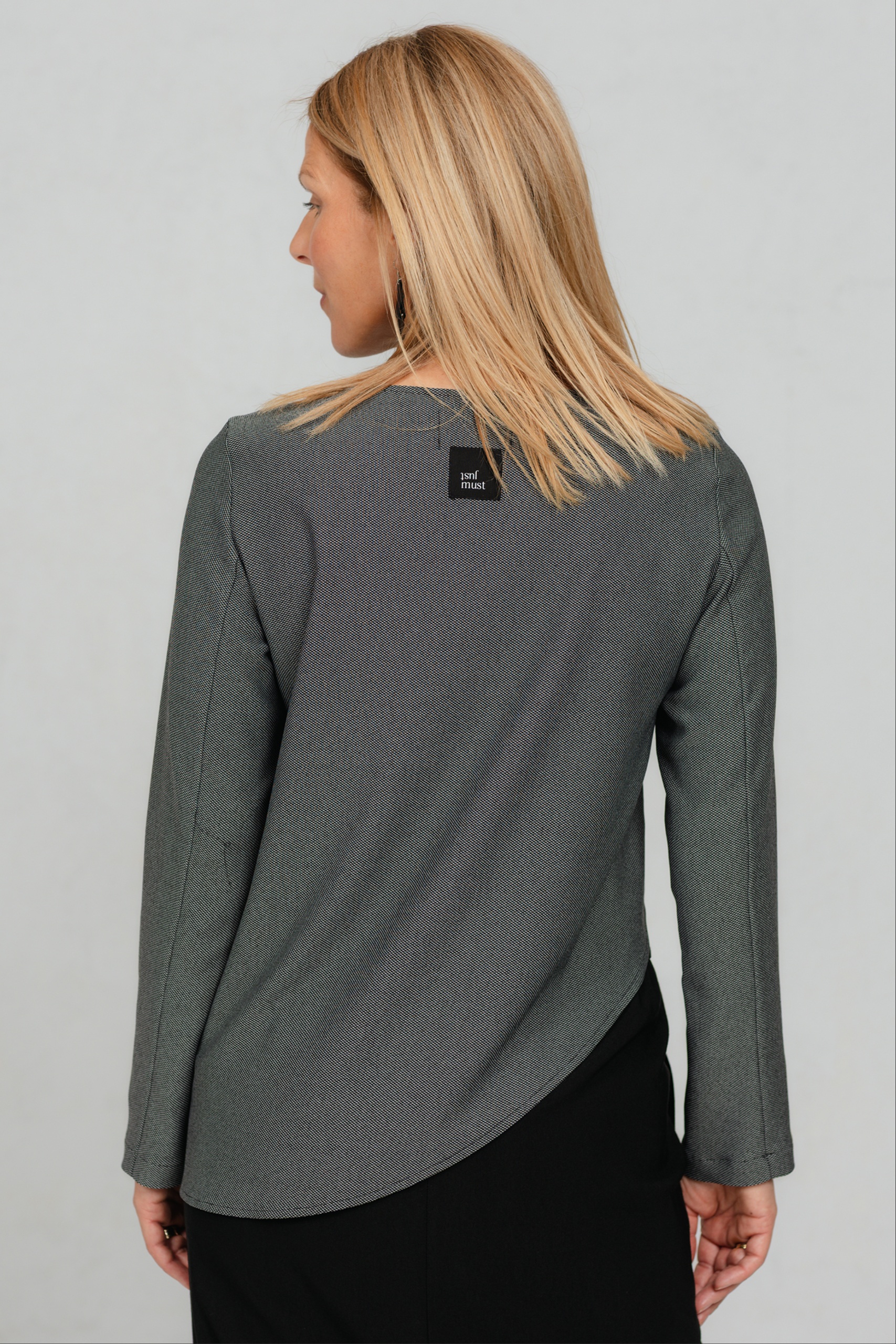 See pluus on loodud lihtsuse armastajale, kes hindab väikseid, kuid läbimõeldud detaile. Klassikalisele lõikele lisab modernset siluetti asümmeetriline alläär, mis toob disaini kergust ja liikumist. Peenelt tekstuurne kangas istub hästi ja järgib kandja rütmi, luues puhta ja rahuliku üldmulje. Väike taskuklapi detail annab juurde viimistletud isikupära, mis on JustMusta stiilile omane. Tulemus on midagi enamat kui lihtsalt tavaline pluus – see on lihtne, aga eriline.