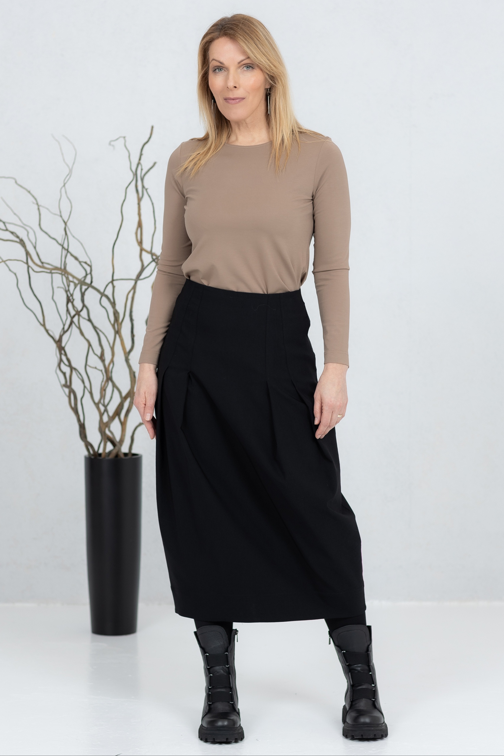 Pikkade varrukatega T-särk, mis on garderoobi tõeline A ja O. Minimalistliku lõike ja pehme, kehasõbraliku materjaliga pluus on loodud just neile, kes hindavad puhast joont ja maksimaalset kandmismugavust. Sirge lõige teeb sellest lihtsa, aga väga kombineeritava eseme – ideaalne nii kihilise riietuse osana kui ka iseseisvalt kandmiseks. Sobita oma lemmikpükste või -seelikuga ja oled valmis päevaks, olgu see kontoris, kodus või linnas.