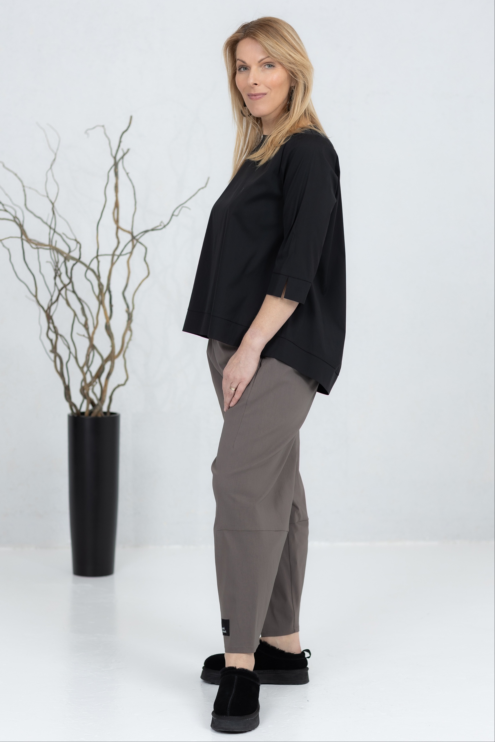 Avaralõikelised püksid. Püksid on valmistatud elastaaniga viskooskangast, tagades suurepärase venivuse ja mugavuse. See kangas järgib su liikumist, olles samal ajal pehme ja mõnus. Mugavad püksid on mitmekülgsed ja sobivad suurepäraselt erinevate JustMusta pluusidega. Loo oma unikaalne stiil ja naudi vabadust.