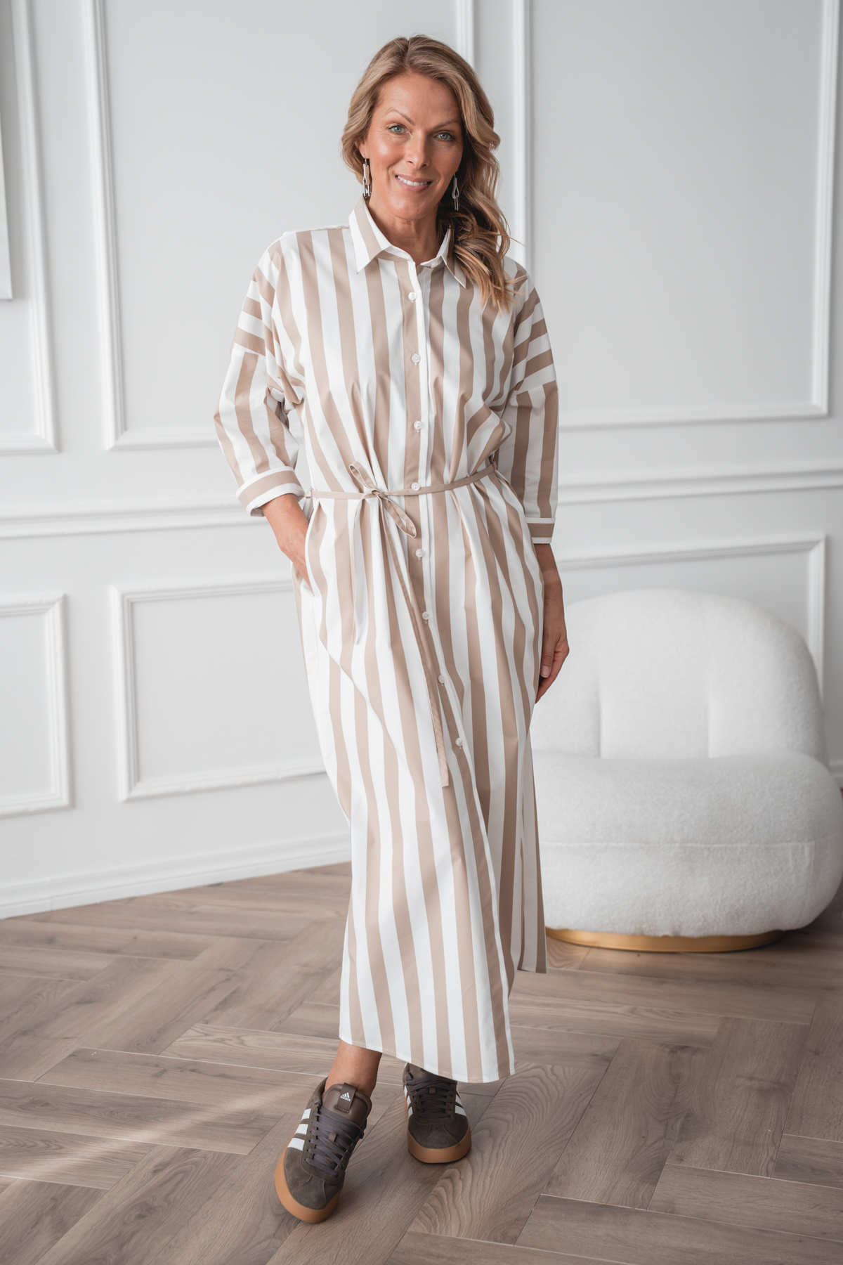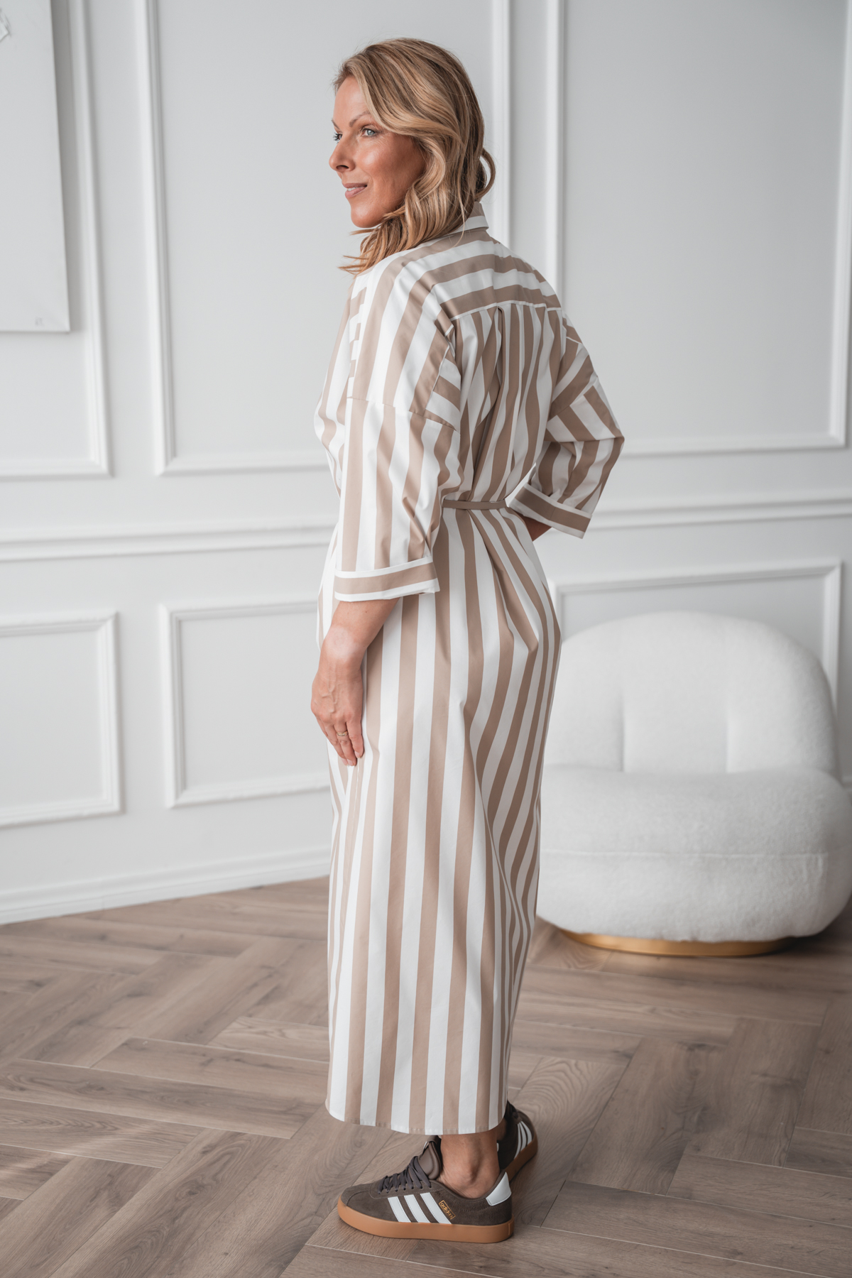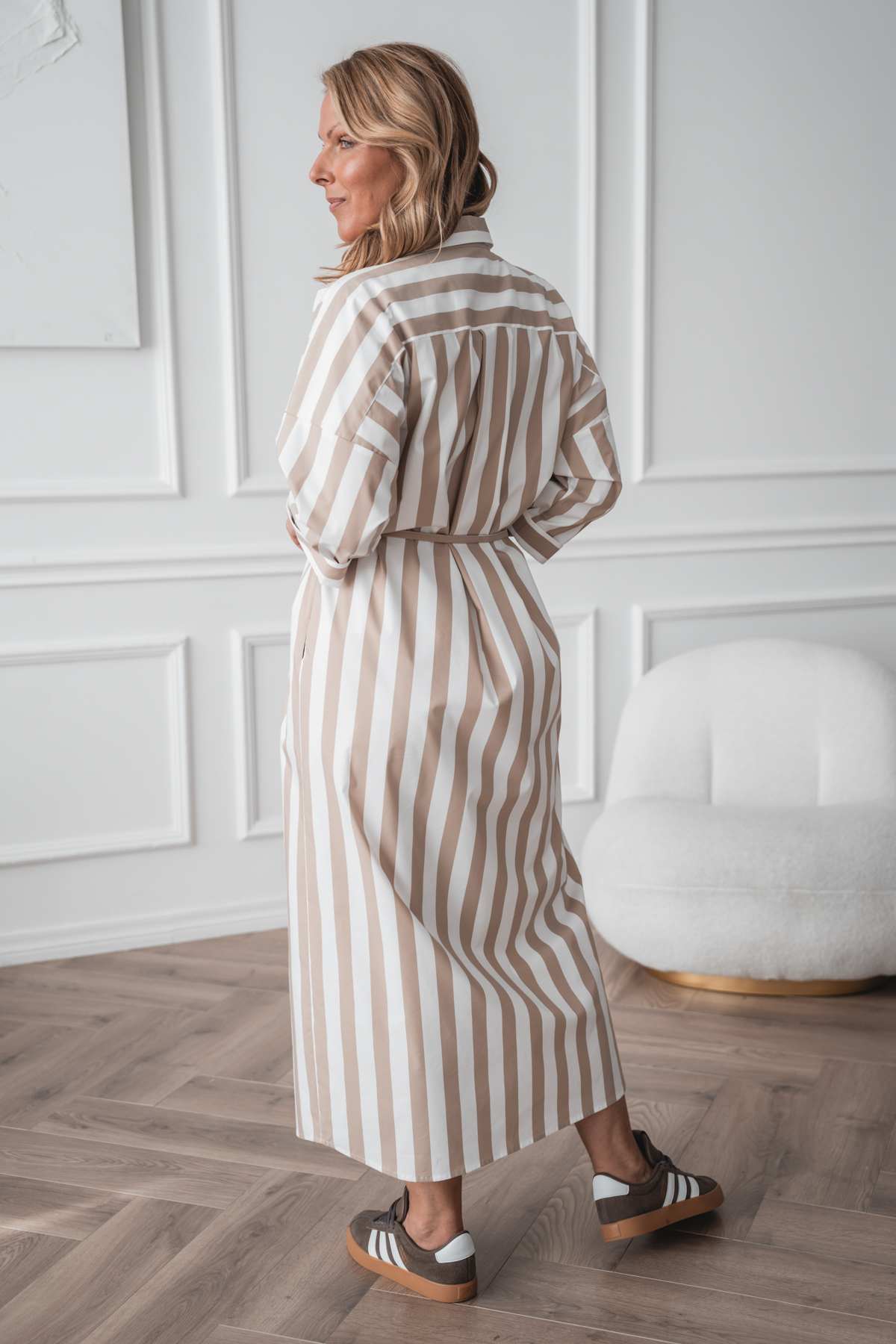 Avaralõikeline särkkleit Mashi, beez triip