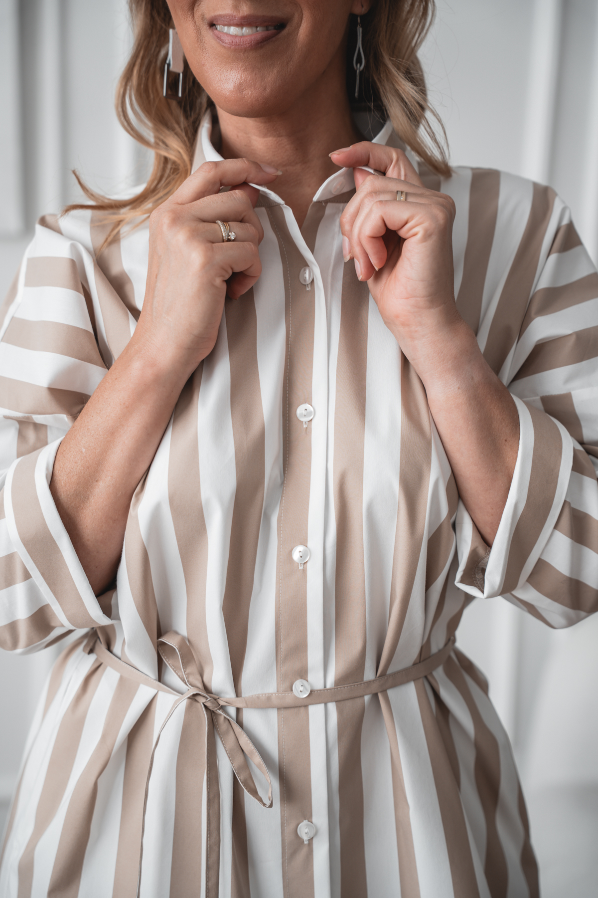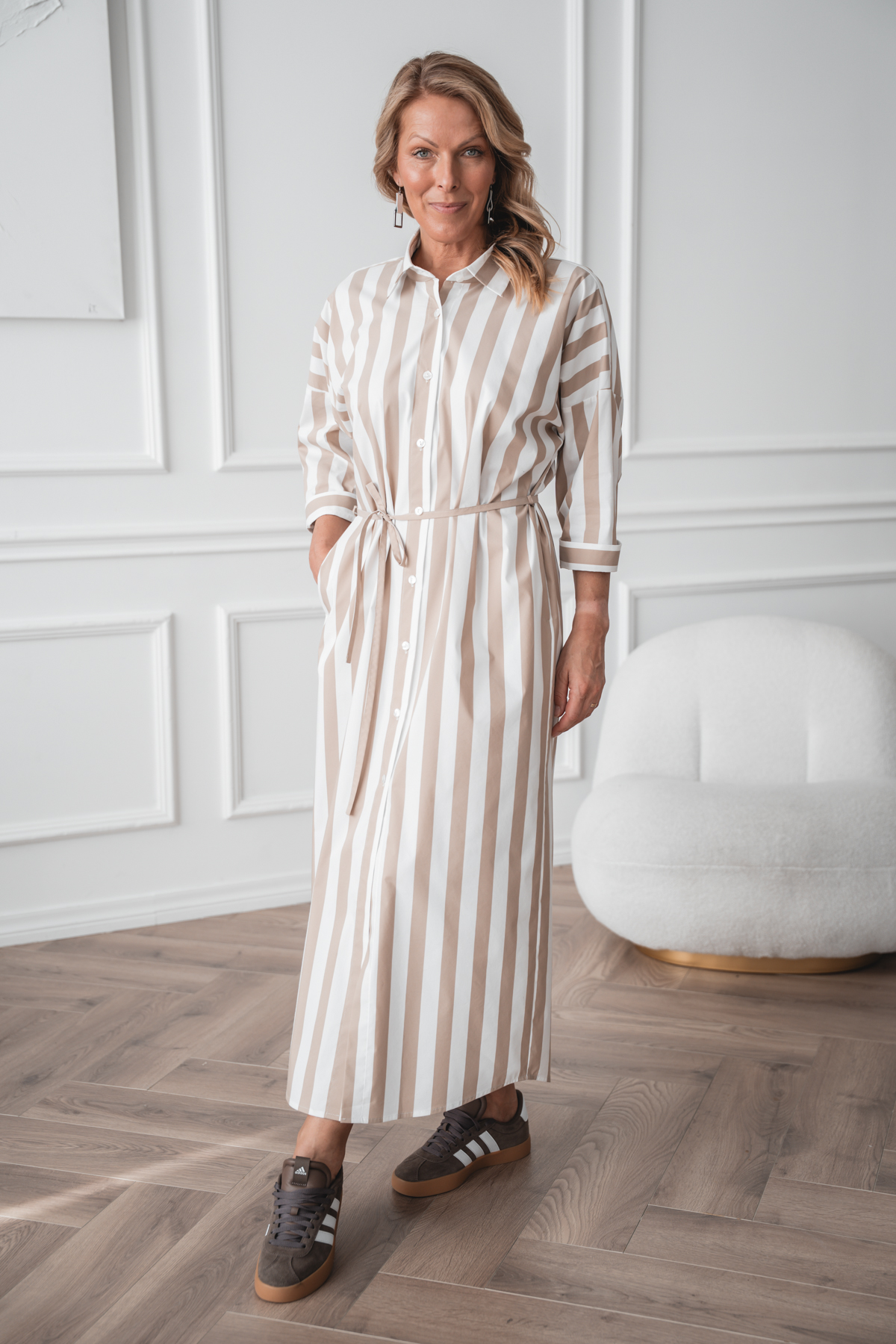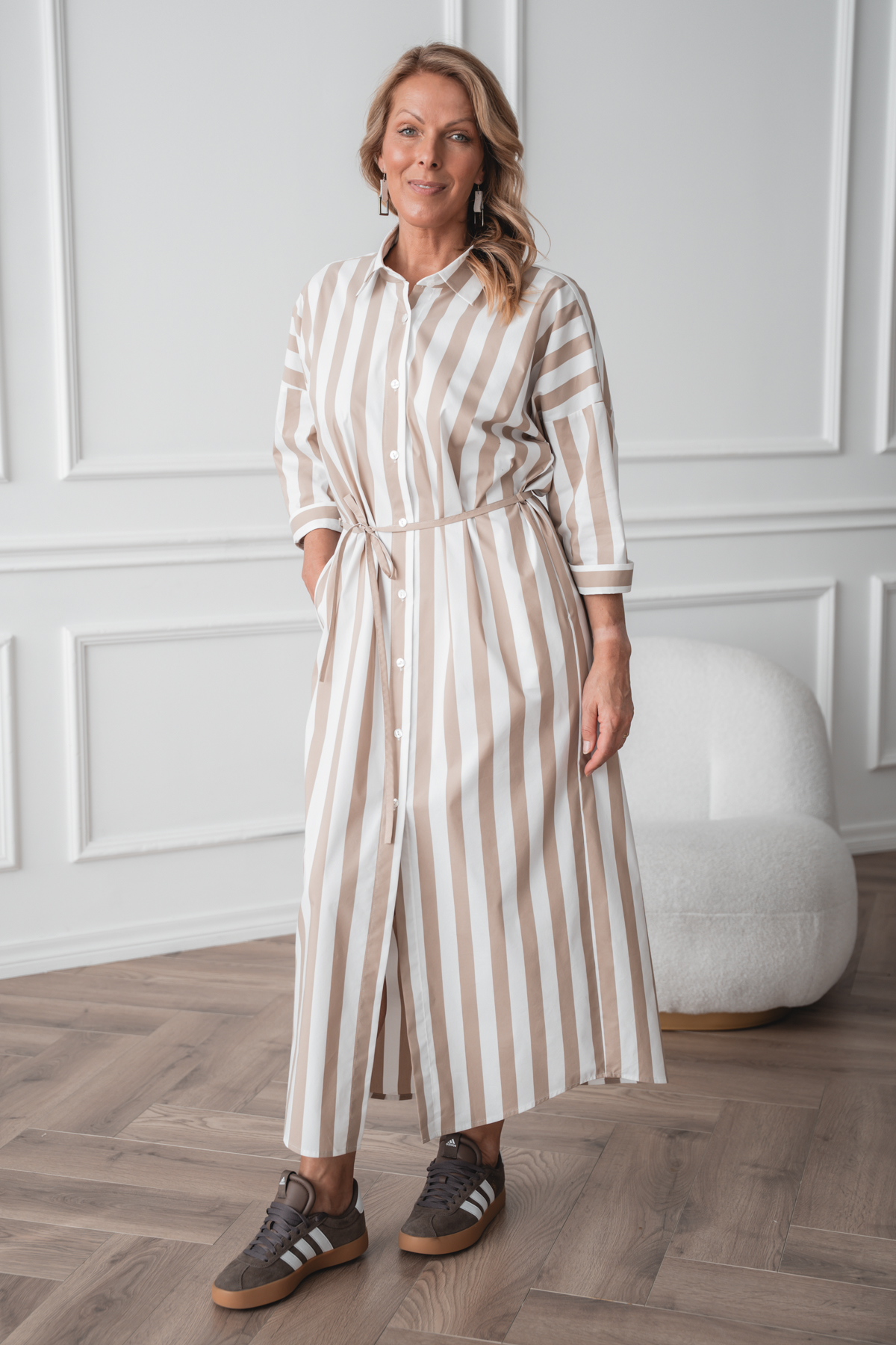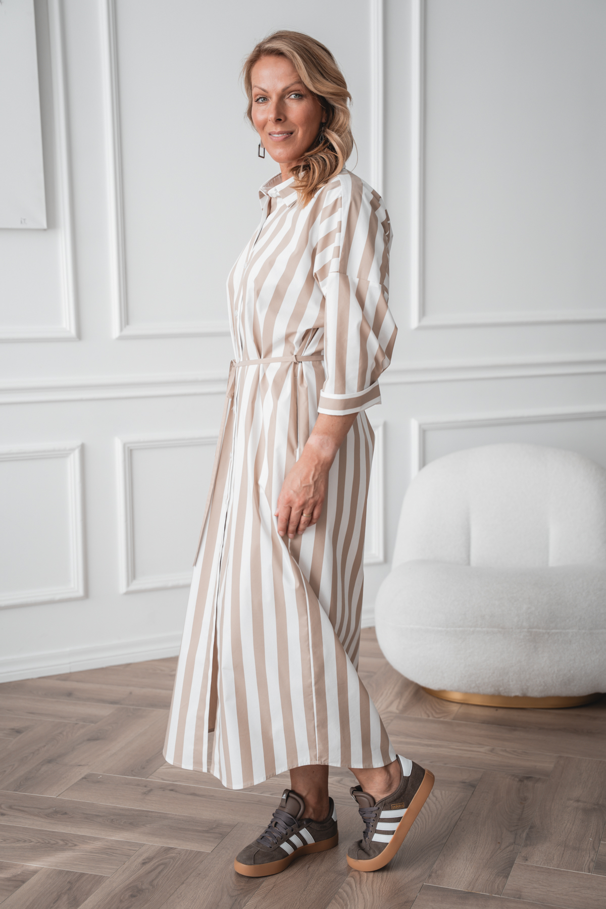 Avaralõikeline särkkleit Mashi, beez triip