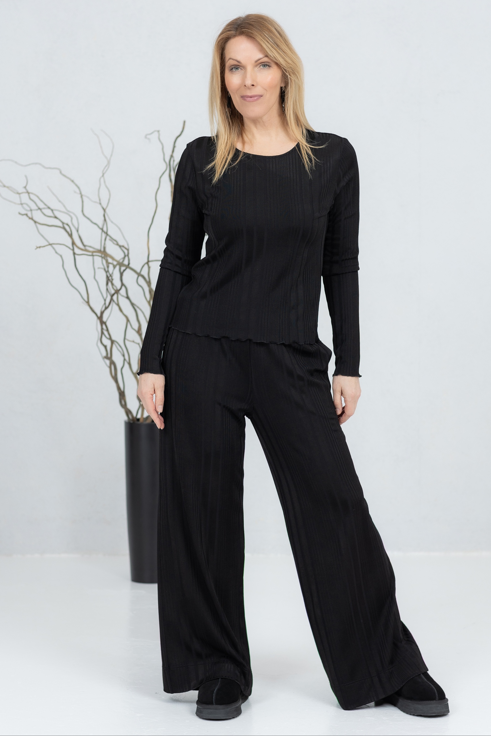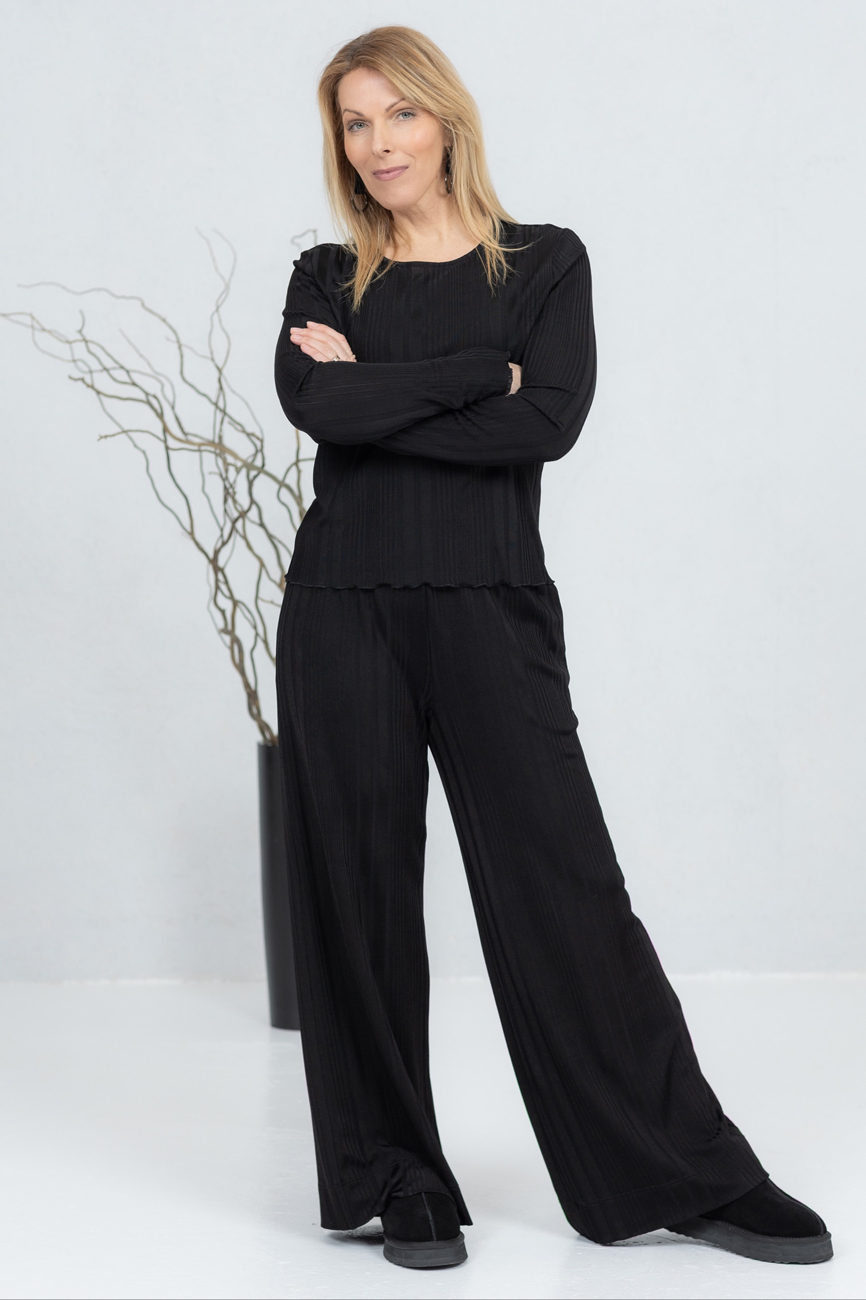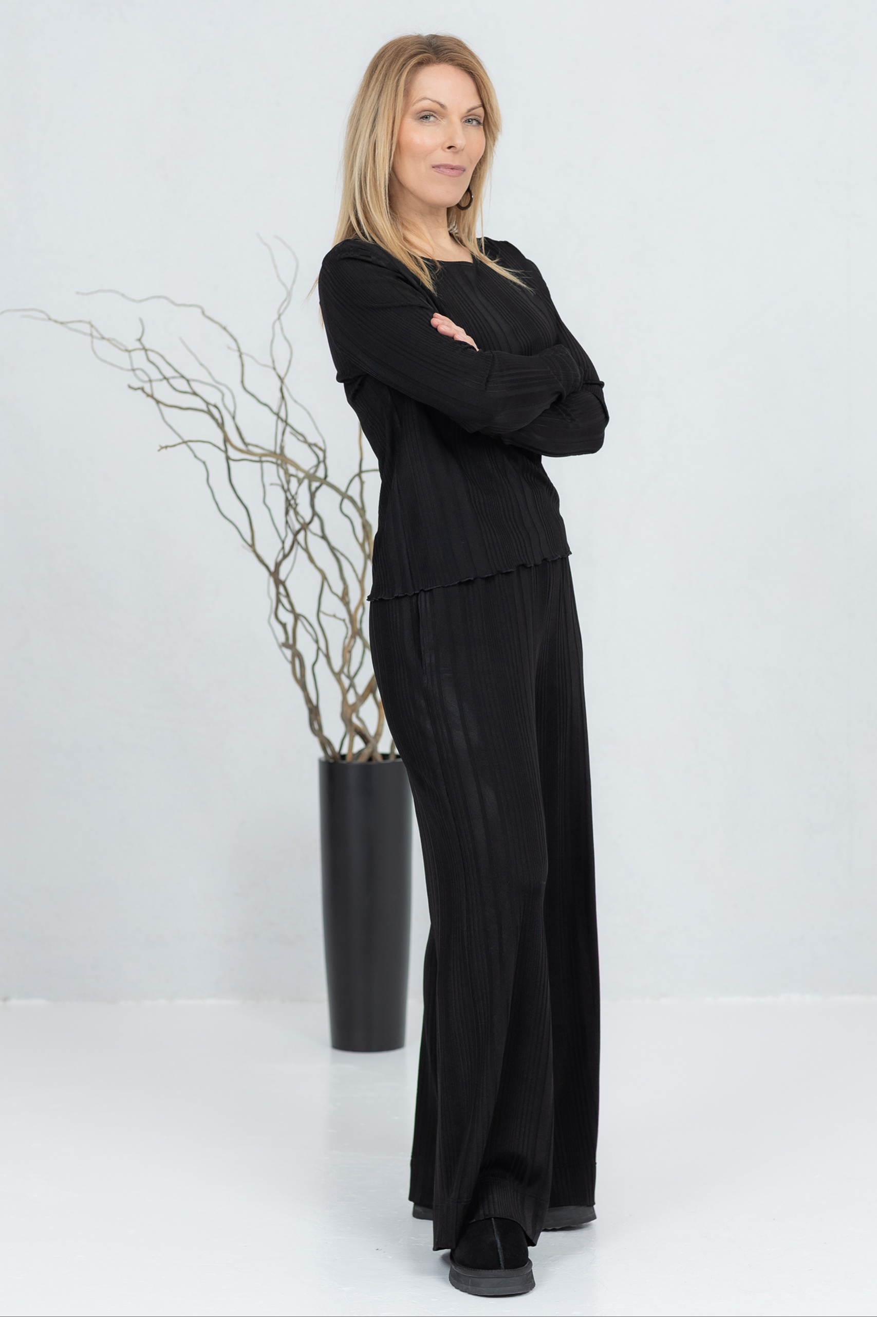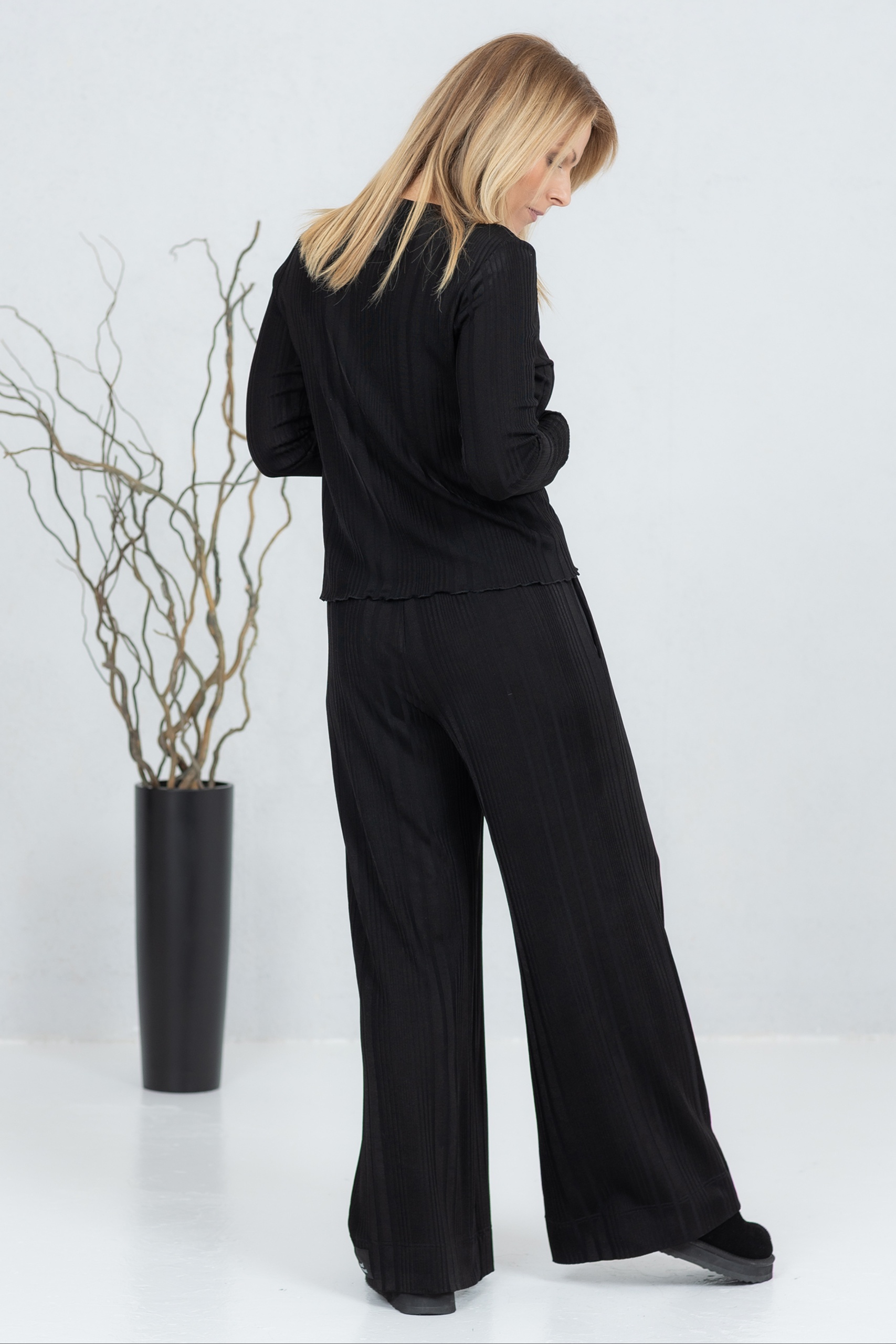 Need soonikkoes püksid on mugavuse kehastus. Elastne vöökoht ja laiem lõige tagavad vaba liikumise ja hea enesetunde igas olukorras. Pehme, voolav kangas sobib suurepäraselt nii koduseks puhkuseks kui ka stiilseks loungewear-komplektiks. Lihtne kombineerida – kanna samast kangast pluusiga või loo oma uus lemmik kooslus.