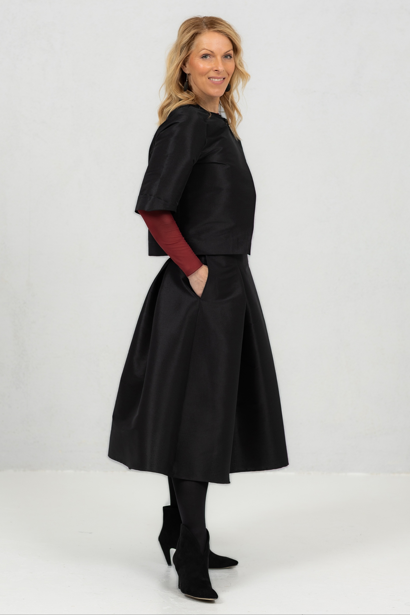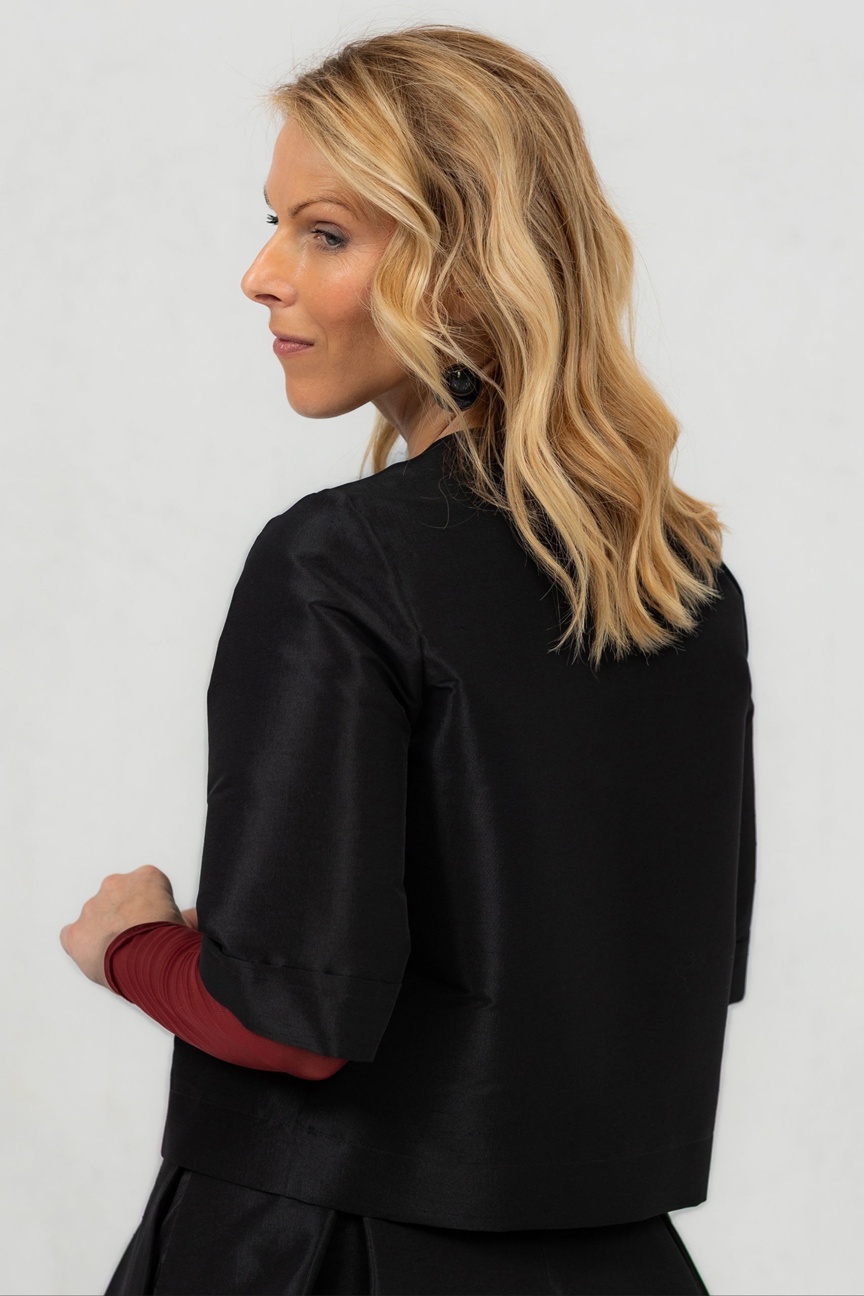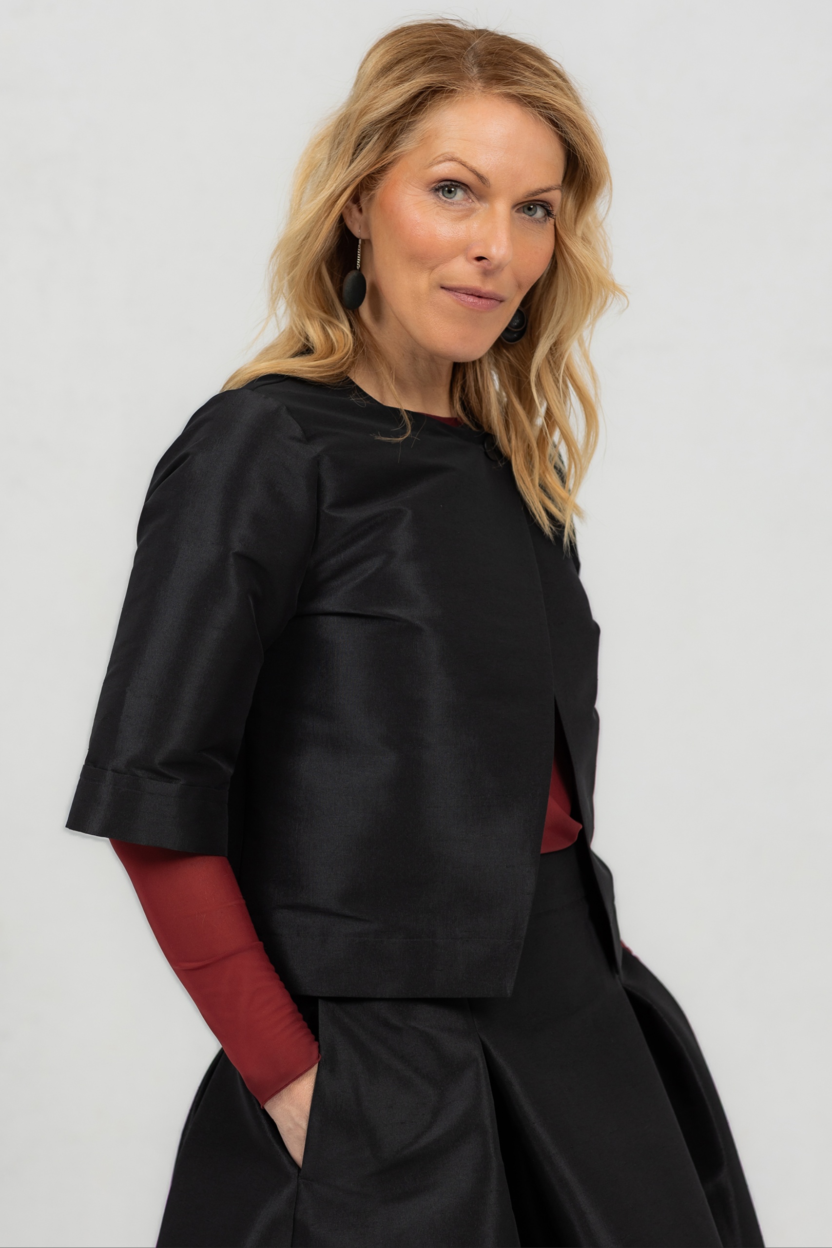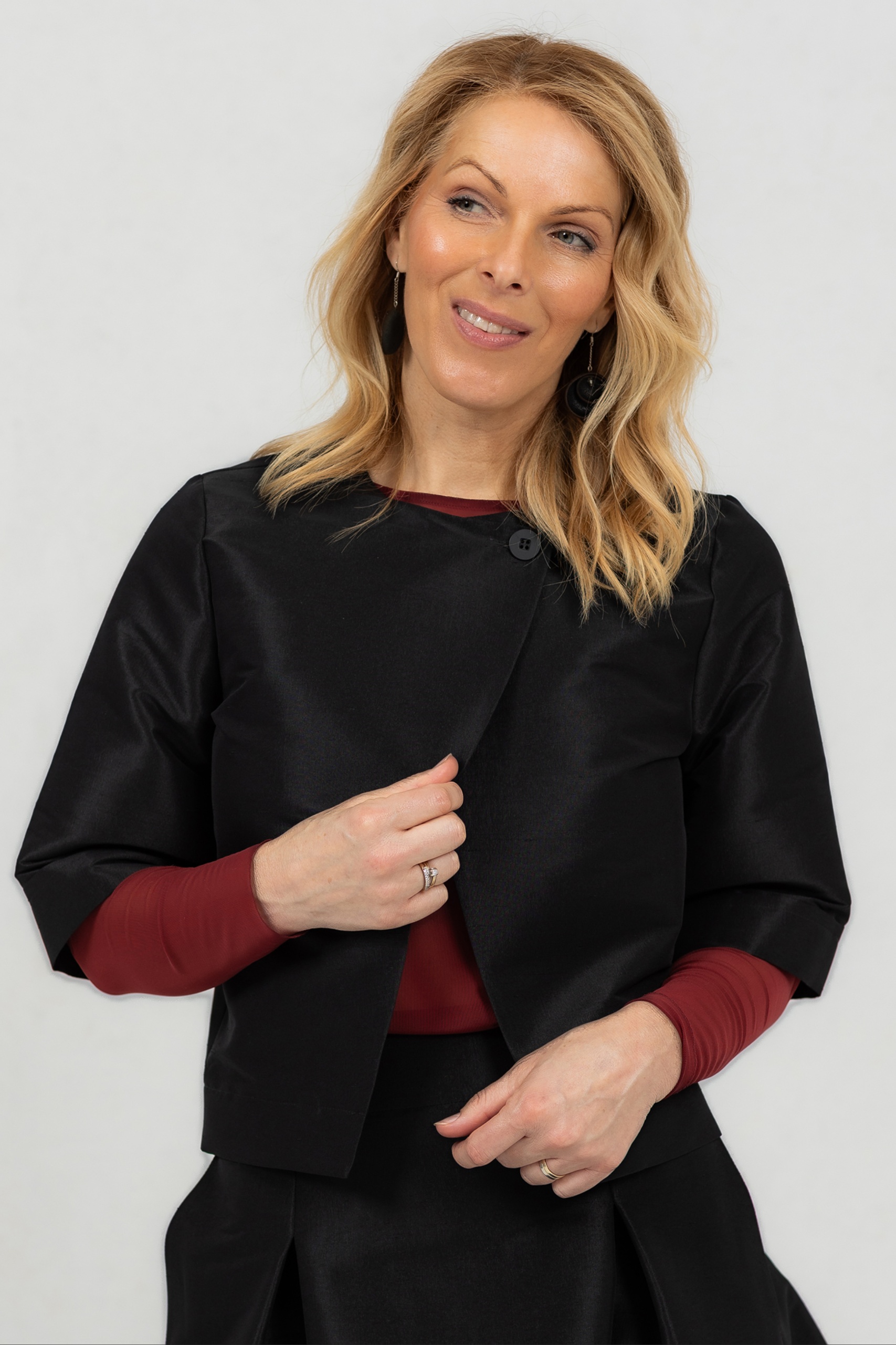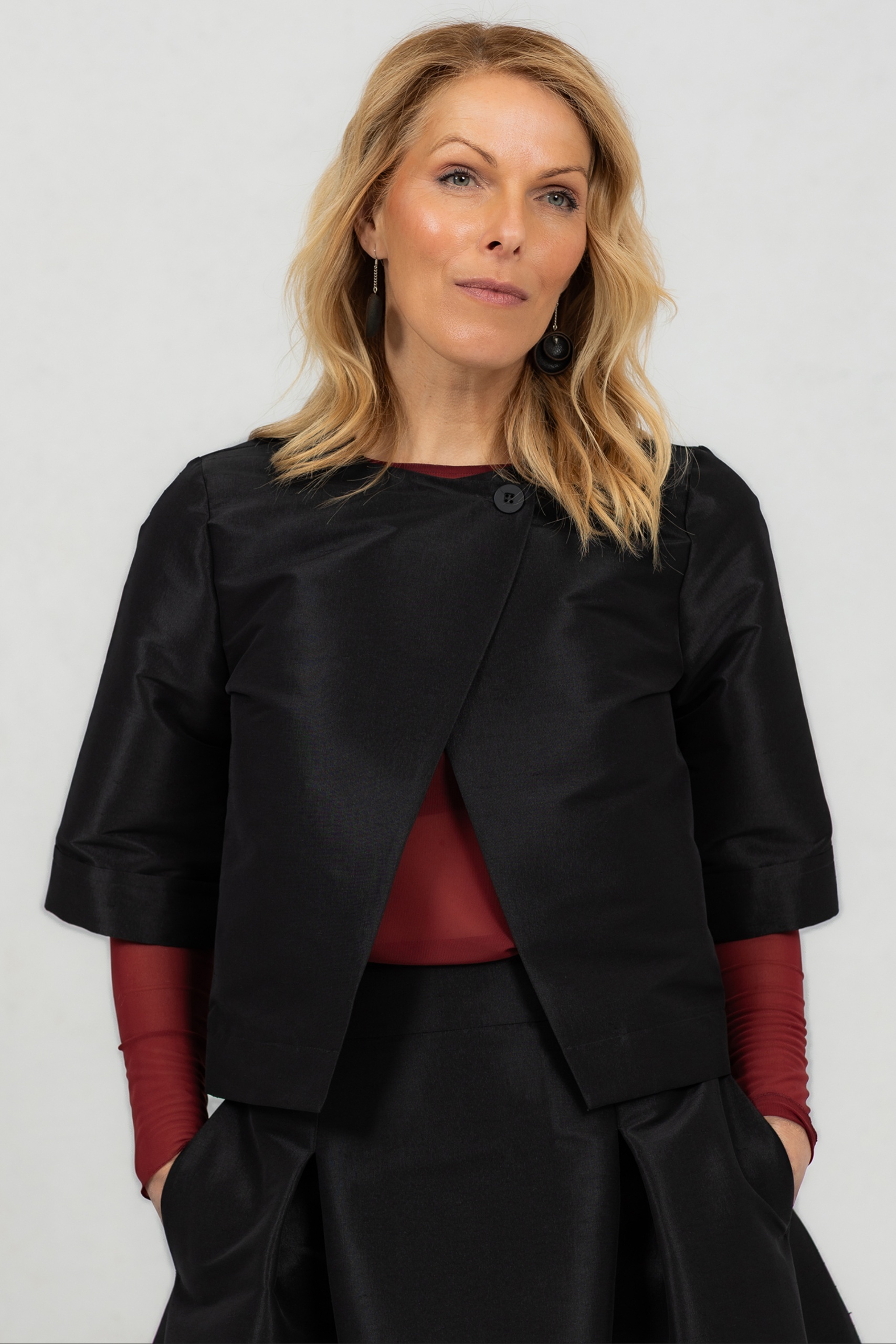 See väike taftjakk on loodud hetkeks, mil soovid oma välimusele lisada elegantset pidulikkust. Minimalistlik, kuid silmapaistev lõige loob selge joone ja täiendab nii seelikut, kleiti kui ka pükse. Kangas on kergelt läikiv ja hoiab vormi, tuues esile selle šiki struktuuri. Asümmeetriline kinnitus lisab disainile eripära. Ideaalne valik, kui soovid särada stiilselt ja pingevabalt.
