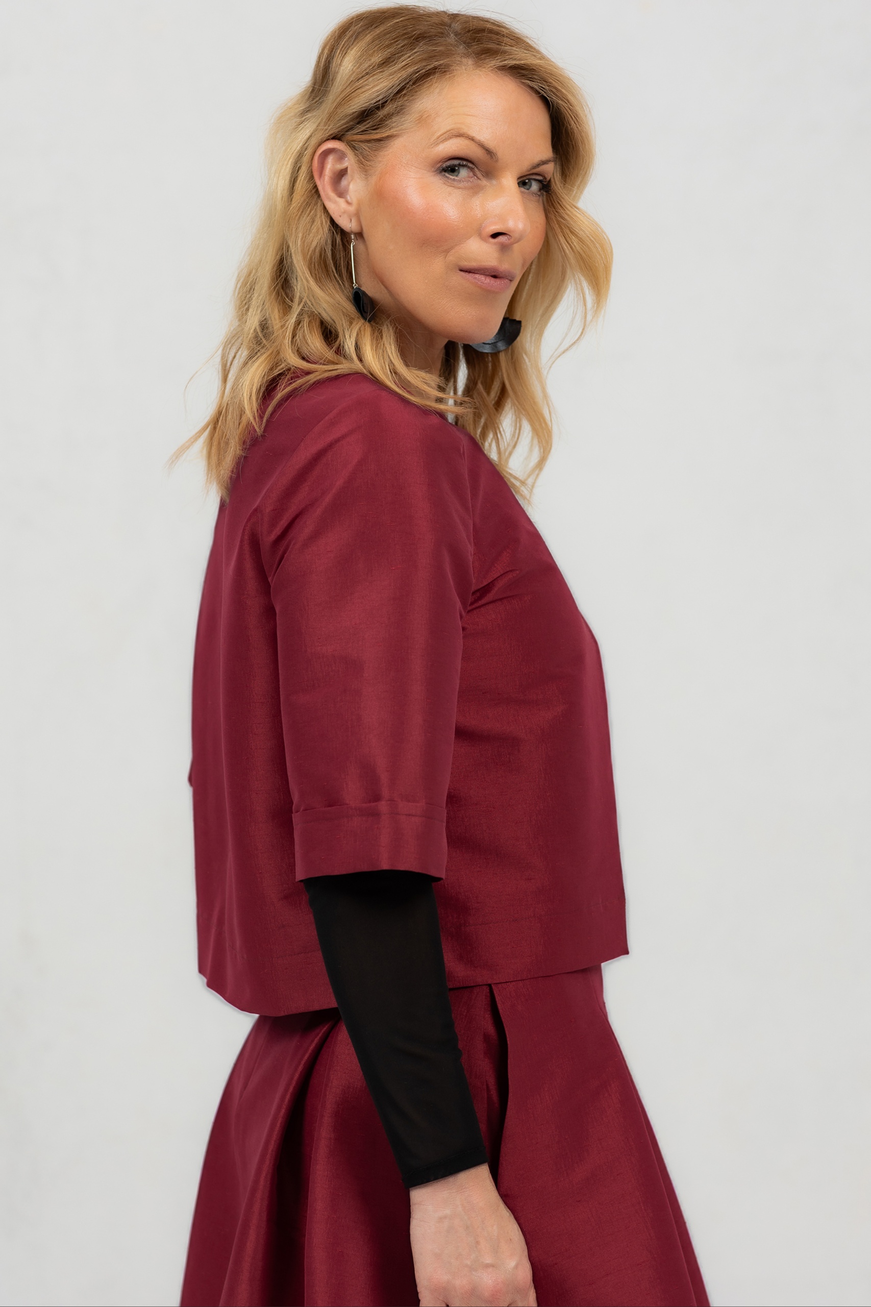 See väike taftjakk on loodud hetkeks, mil soovid oma välimusele lisada elegantset pidulikkust. Minimalistlik, kuid silmapaistev lõige loob selge joone ja täiendab nii seelikut, kleiti kui ka pükse. Kangas on kergelt läikiv ja hoiab vormi, tuues esile selle šiki struktuuri. Asümmeetriline kinnitus lisab disainile eripära. Ideaalne valik, kui soovid särada stiilselt ja pingevabalt.